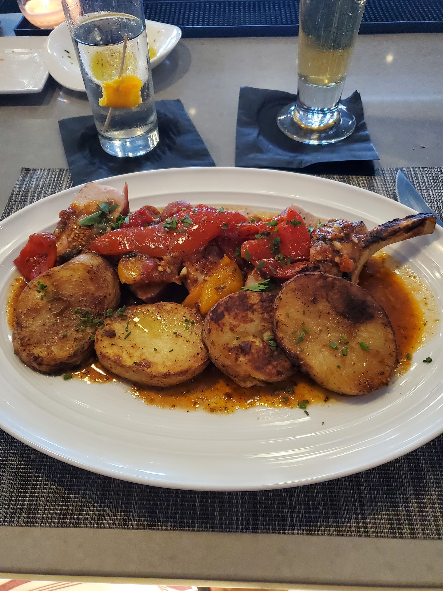 We started out with a couple of cocktails, I forget the name of mine, but it was delicious. It had some sort of round dessert on the rim, Iâve never tasted anything that unique. My wife had a Pear Martini which actually tasted like a pear. Very cool!