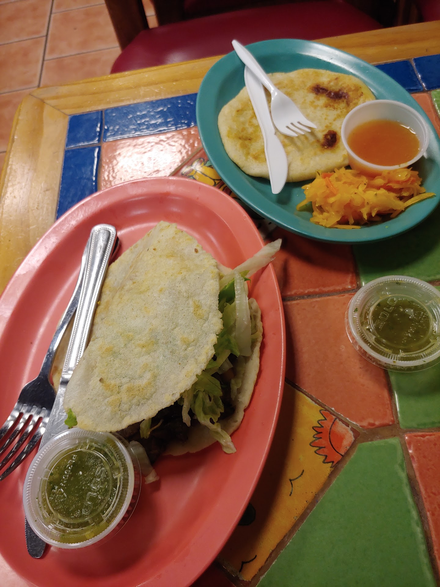 Great place. Local institution. I am a strong personal supporter of their 3-taco combination plate. The chicken is typically delicious, though occasionally dry. The steak is typically well marinated - occasionally overly fatty or tough. I'm a fan of the sausage/chorizo. Once or twice I've gotten a chip of bone/plastic in the sausage, which is disconcerting, but it's so tasty that I was never deterred (and given the number of tacos I've eaten, it's still a rare occurrence). Yellow rice and pinto beans are standard sides and I've always enjoyed them. I do wish they had more vegetables in their dishes (aside from the basic shredded lettuce and the occasional other veggie dropped onto a plate). Cheese pupusas are a great little snack. They have a variety of soft drinks as well as (usually) horchata and a cashew juice or fruit juice. All in all, Tacos Lupita is a...