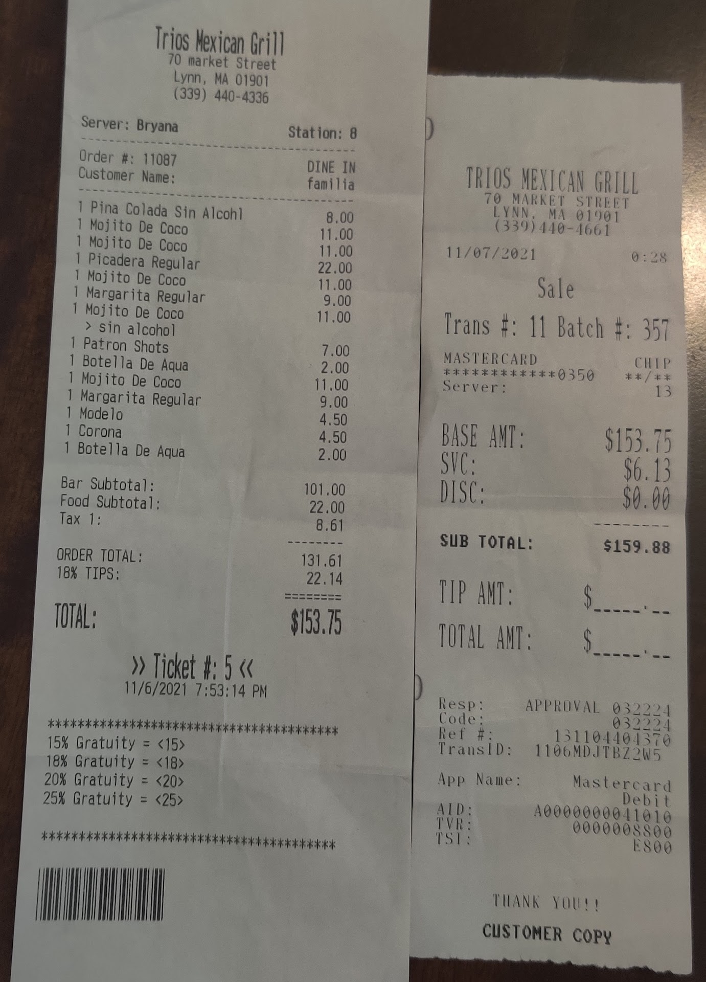 Read moreSábado en la noche estamos buscando por un poco de divercion y terminamo en este lugar. no se pone en abiente como asta la 11:30pm el lugar un poco sobre cargado de personas para su capacidad, el DJ terrible mesclando la mucica, no es capas de leer la audiencia del lugar y aparentemente pone la mucica de su agrado no la del publico que esta consumiendo. los precios de las bebidas aparentenente son rasonable, un shot de tequila $7, cerbesa $4.50, Mojito $11, Margarita $9 pero las Margaritas y los Mojitos estan sobre cargado de azucar y ni siquiera le siente el alcohol, como ai no le pucieran mada. ahora cuando tiene que tener cuidado es cuando pide la cuenta, asegurate de chequiara los dos recivos la copia que te dan para firmar y la copia que te dan para tu recor, no asuma que las dos copias tienen la misma informacion porque es una estafa, la que firma no especifica que ya esta incluido un 22% de tips solo dice el total y tu inocentememte e agrega nuevamente tips y termina pagando doble, mi toral era de $159 con el tips incluido y yo le afeegue oteos $25 sin saberlo y termine pagando un 40% de tips, asegurece de chequiar las dos copias antes...