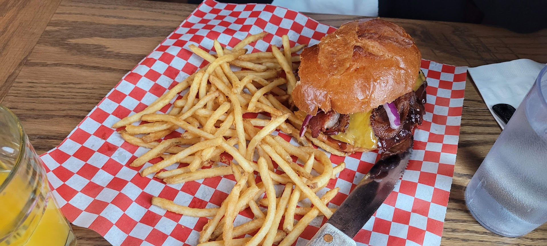 The lack of basic service continued: our water glasses were never refilled, and we asked multiple times for napkins, which never arrived. The staff seemed disinterested in helping each other, creating a toxic environment where everyone was out for themselves. The waitress had a cast on her wrist, which might explain the slow service, but it was the restaurant’s responsibility to ensure adequate support from other staff. Instead, we were left managing a poorly executed dining experience.
