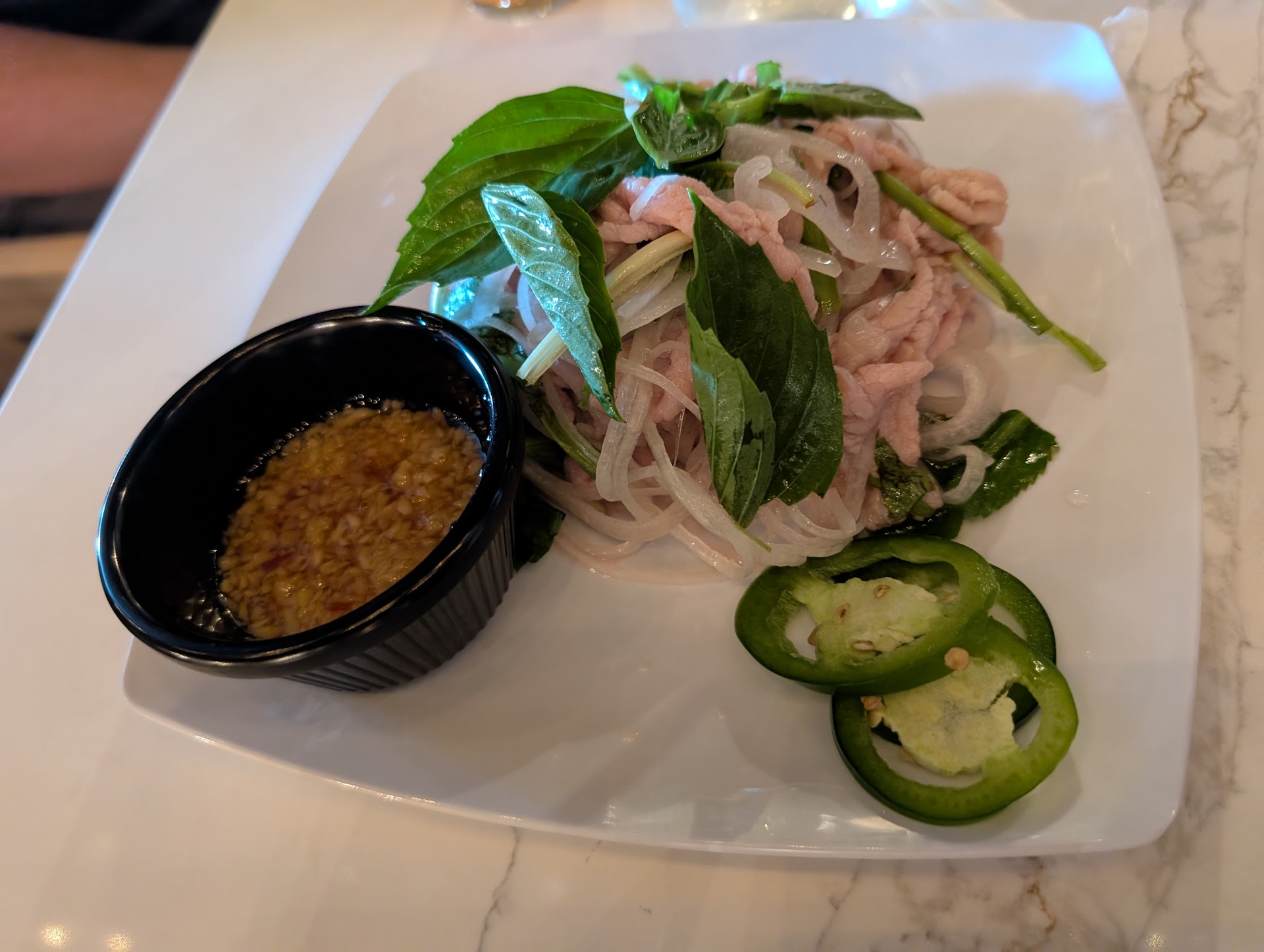 Letâs start with the food: incredible. The inspiration for the food is Vietnamese-American with some Chinese influences. We ordered the Basil Beef, Mongolian Beef, Beef Fried Rice, and Mussels with Lemongrassâand every single dish blew us away. (We are already familiar with Basilâs strong Pho presentation). The Basil Beef in particular is a standout, not just for the flavor but for the quality. At just over $20, youâre getting what feels like a steakhouse filet mignon-level cuts of tenderloin, so soft and tender, seared to perfection and paired with all the components that fans of Basil in Everett know and love: pho broth, pickled and julienned vegetables, cucumber, and perfectly steamed rice. It's a dish that feels both familiar and elevatedâcomfort food done at a seriously high level.