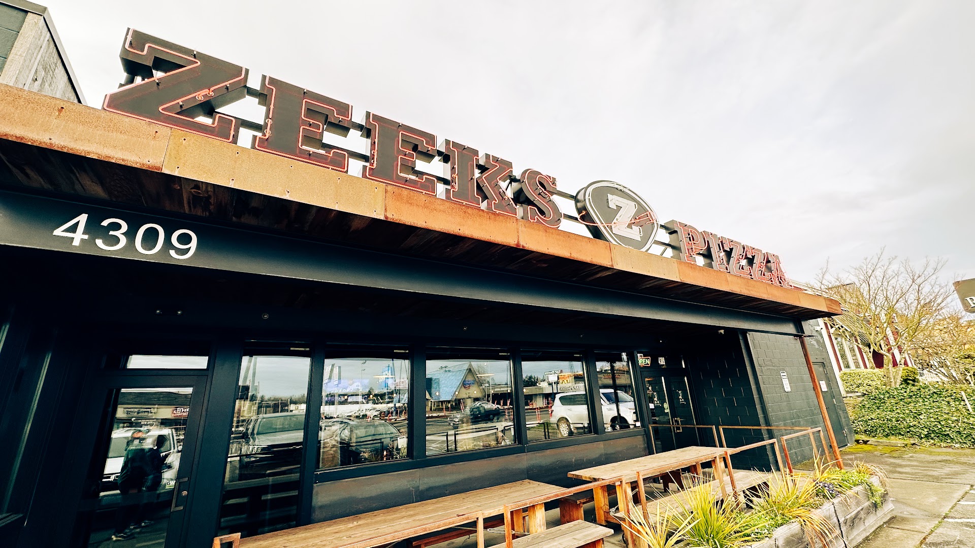 The total atmosphere inside Zeeks Pizza is awesome. We sat at the only large table they had, which is a super long picnic type table, it worked out perfect for us.