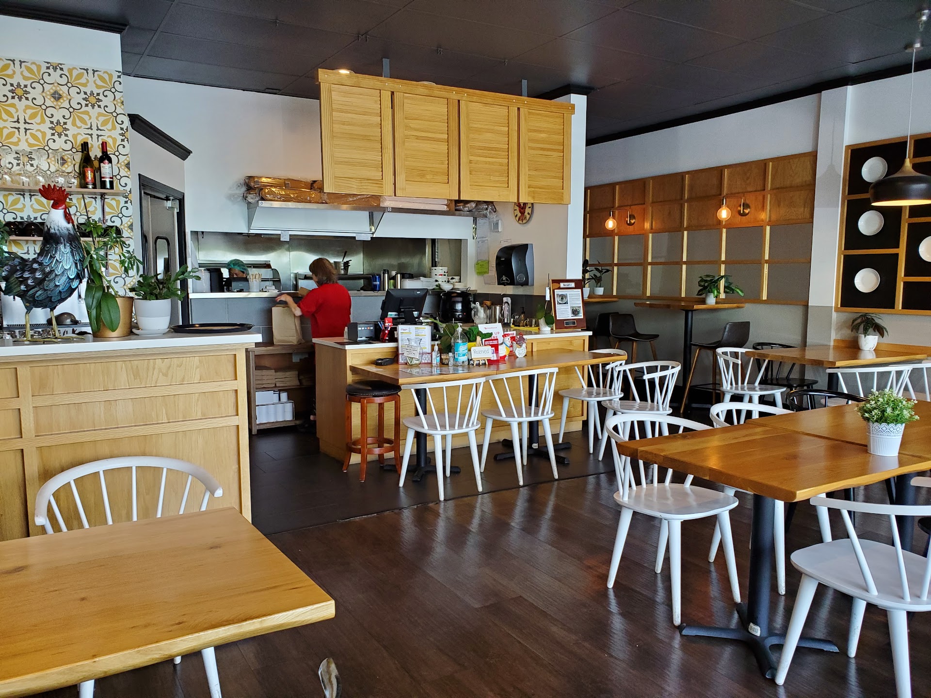 Atmosphere Casual place to grab some lunch or dinner with any sized party. The decorations inside are cute. I love the tables and chairs since they add some charm to the whole place!