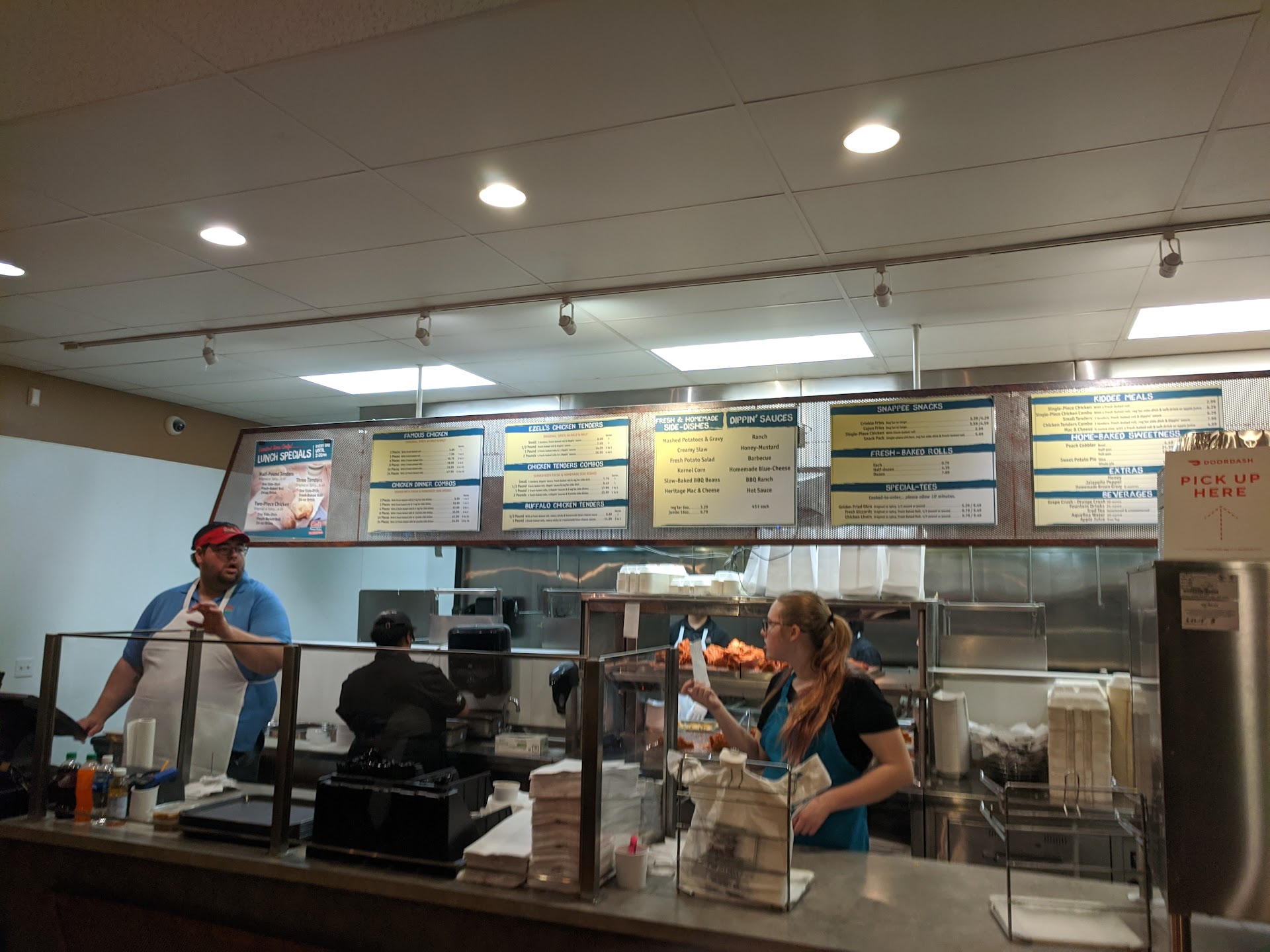 Came by to grab some southern food omw back north on a Sunday at 6pm. Was told there was a 20min wait, fine. Ordered an 8 piece with a side of Mac & fries (was told they were out of mashed potatoes) & 3 chicken strips w a side of okra. While waiting for our food we watched a poor gentleman become upset because he stated to staff he had waited for 30mins and they told him they didn’t have his his mashed potatoes and order ready. The manager did a poor job at attempting to apologize. He stated “we are doing the best we can” but the gentleman explained when he ordered he was not told they were out and he watched them bag mashed potatoes and hand it to other guests who had placed an order after him! They did not attempt to refund him for the mashed potatoes or be apologetic or offer anything for free just told him to pick another side. This had previously happened to me at this location a while ago and I had just been telling my friend who was present with me the story. Sad to see things have not changed months later. When my order was ready I came to the front and asked the manager to open my bags and be sure all items I ordered were present but they told me they were also now out of Mac and cheese at 6pm at night when they close at 9pm and to choose a different side. So I chose fries. The manager checked the order in front of me and I told him I lived over an hour away so to be sure. I get home and no fries! I am unsure how this location functions as not only is the culture terrible within their staff but the management seems to not have things fluently in order. They need to be more prepared and prepped for peak business times and be sure they are being fair when serving guests! I won’t be coming back to this location which is unfortunate because it’s one of the few places I know where I can get...