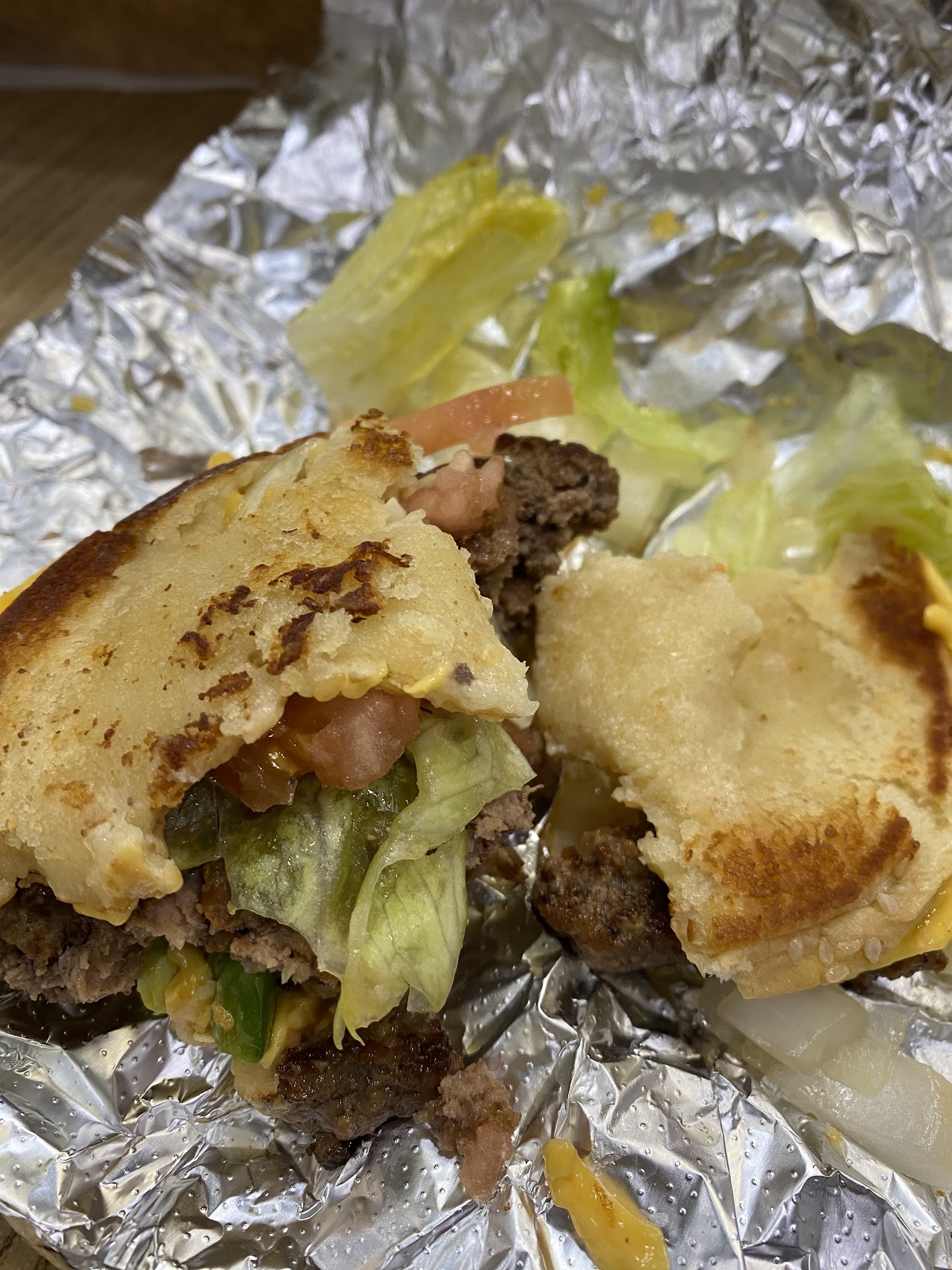 It was a simple Wednesday evening. The birds were singing, and the sun was basking in the baby blue sky. I stepped out of my car and took in the crisp-grease filled air. The stench of peanuts perfumed around me as I walked through the door. "Welcome in!" Makena and her team stoutly and cheerfully greeted me at attention like well attuned soldiers. As she set her team at ease, she addressed what might I order. "A double cheese, please." And just like that, I had a double cheese. What a nice duwang I reconciled to myself. How absolutely based.