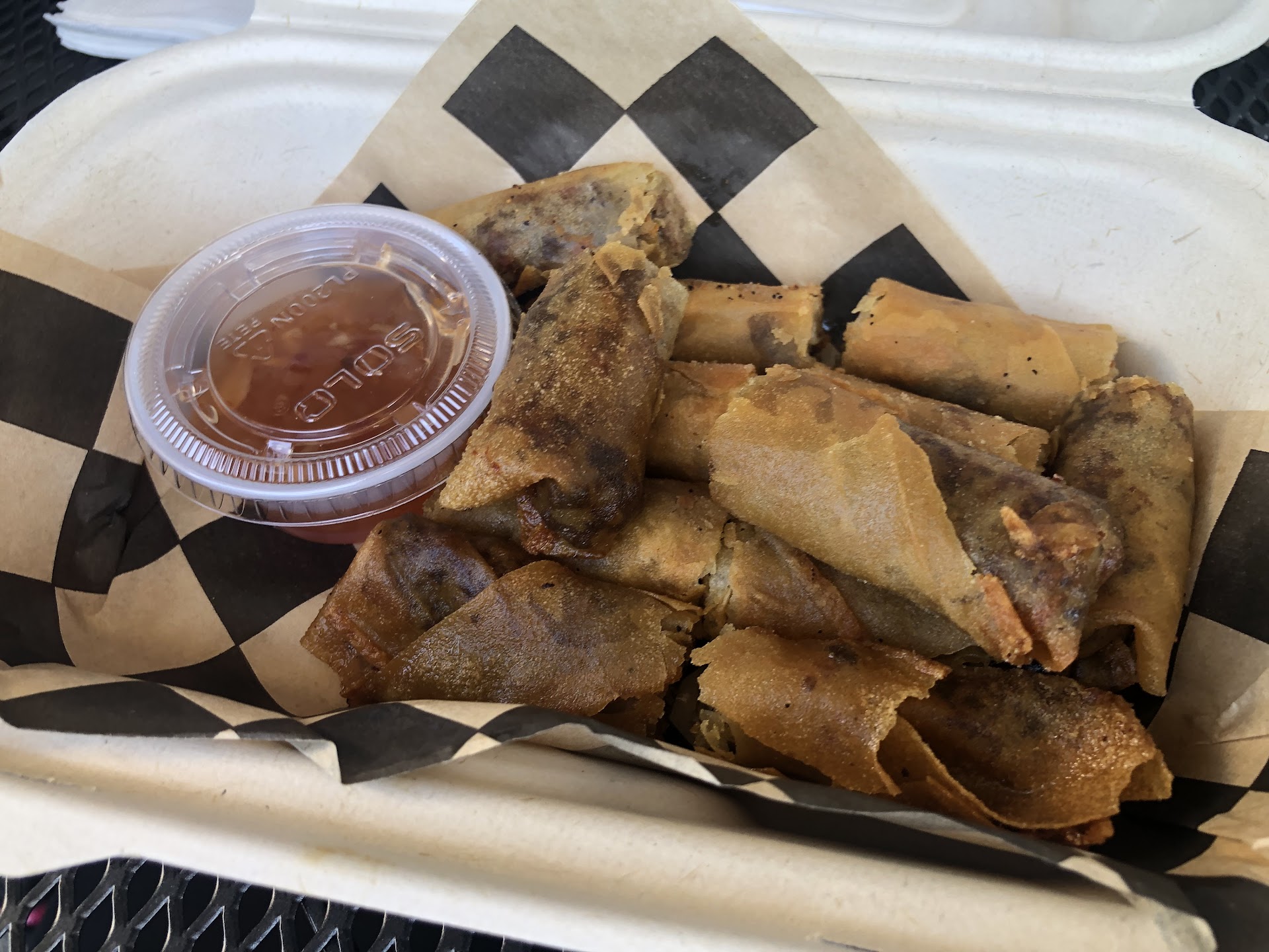 FOOD: Lumpia $6 - Crispy beef spring rolls: An order comes with 6 rolls that are cut in half. The inside is flavorful and the exterior is crispy and nicely golden.