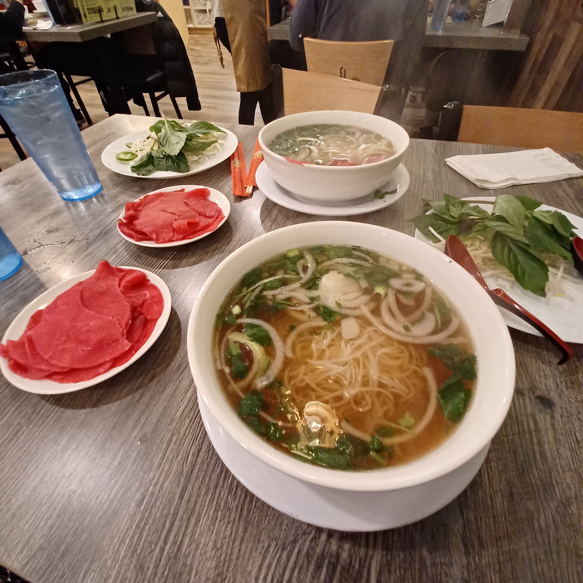 Read moreAMAZING, DELICIOUS PHO The broth was right on target. I had flank and cooked perfectly well. I ordered potstickers and I must say, very original close as authentic as you can get. The prices are really reasonable for the huge medium bowl I ordered, I would for everything on menu. Let me just reflect on Pho, the broth was very well seasoned, flank was exceptionally nice and tender. It got better once combined with the herb, jalapeno, bean sprouts, and ofc lime, must add lime. I like to add different table sauces they had, too me there's nothing better than Spicy Pho. As for the potstickers, one would say"Very delicious, right amount if crispness, a bite and no greasy experience. Lol.The staff was very, very accommodating, our waiter was very attentive and you can tell they look out for each other. When my waiter was busy I had a young lady check on me. It may not be a high class restaurant, but the food and service was, this is DEFINITELY a place that will become a place I will revisit over, over, & over again. Lol. Not many restaurants can offer all of this in "one". Make sure you are ready to workout, I promise you can't get enough and will become a frequent customer. Great...