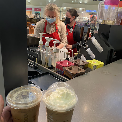Read moreI had an amazing barista make two great drinks for us and was extremely kind today. Unfortunately, this light-brown haired barista with cute buttons attach to her Starbucks apron was working the bar all by herself. Her female coworkers did not help her make a single drink of the 8 pending drinks, to a point where the barista even made a comment to me about how she was working alone with 4 other people behind her. It was unfortunate to see only one man working register kindly, while the chill barista compensated for all the work that 3 girls refused to do. I felt a duty to leave a review after my sad interaction with this this kind person, in hopes that management would see the way some of their employees treat the kind hard working ones. I suggest finding more baristas like that male and female, and finding less...