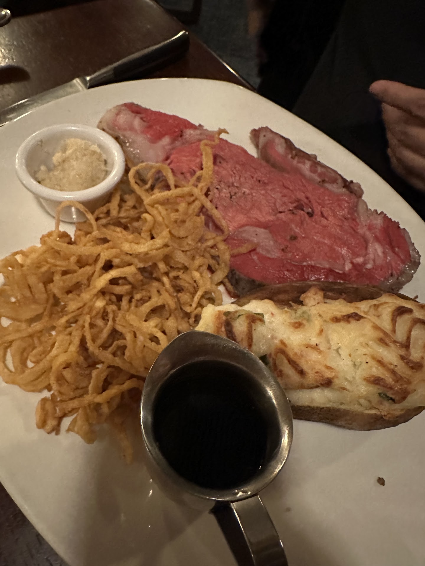 Food I ordered the Kansas City striploin (18 oz) because it was a holiday menu item that was coming to an end soon and I wanted to give the time limited a shot. If you have the opportunity to get it, I would highly RECOMMEND! The steak is HUGE, super filling, tons of meat with a good amount of fat (but not too much). The garlic butter confit was just extra flavor that went so well with the steak. Mashed potatoes as a side are a great choice!