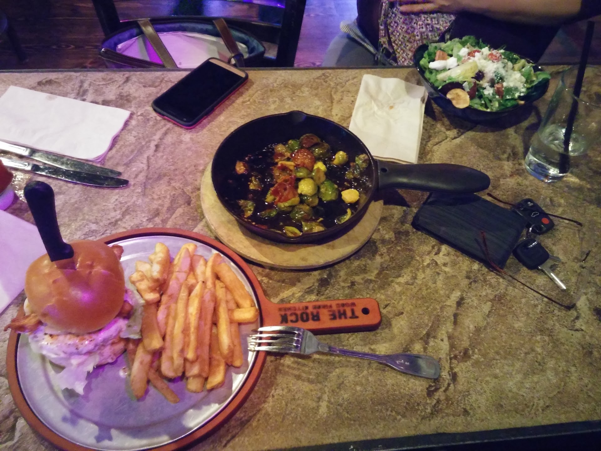 Read moreWent to the Rock Pizza in Lynnwood on Father's Day with my wife and son. We got seated almost immediately and the restaurant only had maybe 8 tables seated, so not busy at all. We've been eating at the Rock (mainly Bothell) since they opened the restaurants. Gentlemen server came over with our menu's and took our drink orders (1 mr pibb and 1 coke). Brought back our drinks and took our order. ( 1 large pizza and 2 side ceasar salads, one with chicken) When the Salads came out, the one with no chicken had croutons while the one with chicken did not (strange but whatever) The main problem was both salads had way Too Much ceasar dressing. We each had taken may 6 or 7 bites. I ate the chicken that was on mine and we told the server what the problem was and he apologized and took them away. Few minutes later he came back and said the manager took off the one with the chicken because it was the most expensive. I didn't quite hear what he said but my wife heard him. Pizza came and we had ordered it with mushrooms. Needless to say I think we saw 4 or 5 mushrooms. By this time at least half of the occupied tables had left. So now really not busy. Never did our server ask us if we would like refills for our sodas, while he walked past multiple times with our empty drinks sitting on the edge of the table. At $3.50 per soda a refill should not be a problem and a person should not have to ask when the restaurant is nearly empty. When our bill came only one salad had been removed and we were charged $6.50 for the other inedible one. This is and was inexcusable customer service! Especially on Father's Day when the Restaurant is Empty around 5:30pm. I work hard for my money and expect a pleasurable experience at a restaurant with my family...