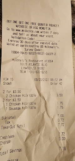Read moreThis is the worst Mc Donald's I've been to. The past 3 times I have had issues with the food and the employees. They can't pack a bag of food properly without smashing your burgers, they can't even make a simple cheeseburger that lines up straight because my bun and cheese are usually half way on the burger with the other half exposed, I've called to speak to the manager and she didn't care about any of my issues, and when I've called the 800 customer service number I've been told the Franchise owner would call me and they haven't. I forgot to mention, there was an issue with the app and it said I needed to go into the store. There were so many customers standing around with NOBODY at the front counter. I finally loudly ask the people in the back if there was anybody that could help us and nobody turned around but somebody said somebody would be there soon. Nobody ever came to the front counter and the customers looked upset. It's obvious the owner doesn't care and it trickles down to their emloyees. I highly recommend you keep driving to the next Mc Donald's. DON'T EAT AT...