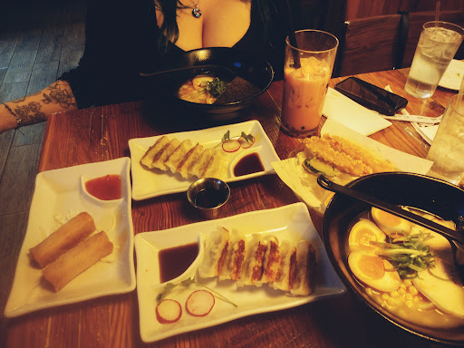 Read moreThe food is overpriced for the portions. They should be embarrassed to give 6 small gyoza for $9. The $16 ramen bowl was half full, and honestly, the least authentic miso I've ever had with dry chicken bits floating around. Not to mention, we ordered mushrooms for another $2 and barely got ANY, which was infuriating, to say the least. With an already small portion of food for so much, I was expecting an actual Ramen expirence with full bowls and delivery on the actual service, which left a lot to be desired. They brought out my food about 7 minutes before my friend ever got served, which is just weird because why wouldn't you wait for their food to be done so I can actually eat. as well as waiting multiple minutes to serve my friend their tea while I already had my drink. It's a small place. There's no way it takes that long to bring a drink. The bowls give the illusion of being a lot, but they have very wide tops and thin bottoms, and my friend was served udon in what looked like an eccentric cat bowl. Not to mention, the small fried rice that tasted burnt to the pan was $7.50, which is ridiculous for such a small portion. I wouldn't recommend eating here for a plethora of reasons. Save yourself $80. (Ps the mango milk tea doesn't taste like mango just sad milk with warm popping Boba).