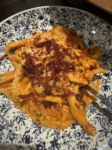 I would say 4.2 is the more accurate rating for this place. We came on a Wednesday night and it was super busy for a weeknight. Hopefully, that’s not how it usually is because the food is really good. We didn’t have any reservations but we got seated right away at this high top table. I did take off half a point because the chairs are so close to the next table. The staff had to squeeze through just to put food down, refill drinks, and clean up. Other than that, they have seating inside and outside. Free parking in that lot across the street, if you’re going for dinner. You can also park in the neighborhood. Prices were reasonable except for the arancini.