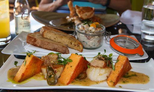 Read moreRooftop views, fine dining, and colorful cocktails were the highlights of our meal at Fourteensixteen last night. I ordered two appetizers, the smoked trout and scallops. Their menu isn't that explanatory about how dishes are specifically prepared, but our waiter Tim made up for that. He made sure to tell me what the smoked trout was, mixed in mayonnaise and served with toast, saying how the menu doesn't describe it that way. I appreciated him clarifying that, but it still sounded delish, so I did still order it. The scallops (served with Lobster Polenta, Ham Hock, and Pork Belly) were tasty as well. My mother had the Green Circle Chicken main course and loved the flavorful lemon rosemary sauce so much. The half chicken is oven-roasted and pan-seared, served with asparagus.