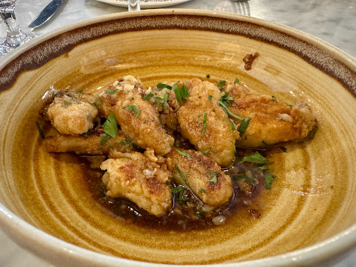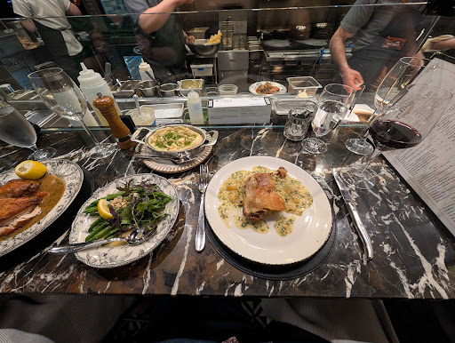 My wife had steak frites. Checks all the SF boxes, but I donât get steak frites in France either. So maybe you will love it. Nice char on the steak. Itâs authentic, but I would prefer something saucier. The fries tasted great in my almandine sauce!