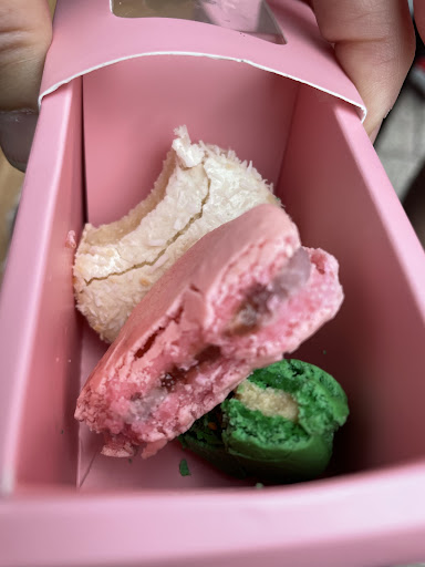Such a fun idea and cakes were so fresh! The donut place we intended to visit was closed, but we luckily found this gem. The cakes are more frosting than cake, but not complaining here. Chocolate âshellâ around them was delicious! Hazelnut cake went fast with my kids (& husband). No processed flavor like some hazelnut baked goods. We also tried macaroons, pistachio, raspberry and coconut. They all had a nice crunch but then still soft and tasty middle. Flavors were just as their names suggested. If youâre even sort of in the area, any hour of the day, head over! They come in such cute little boxes you could even grab some to bring to a friends...