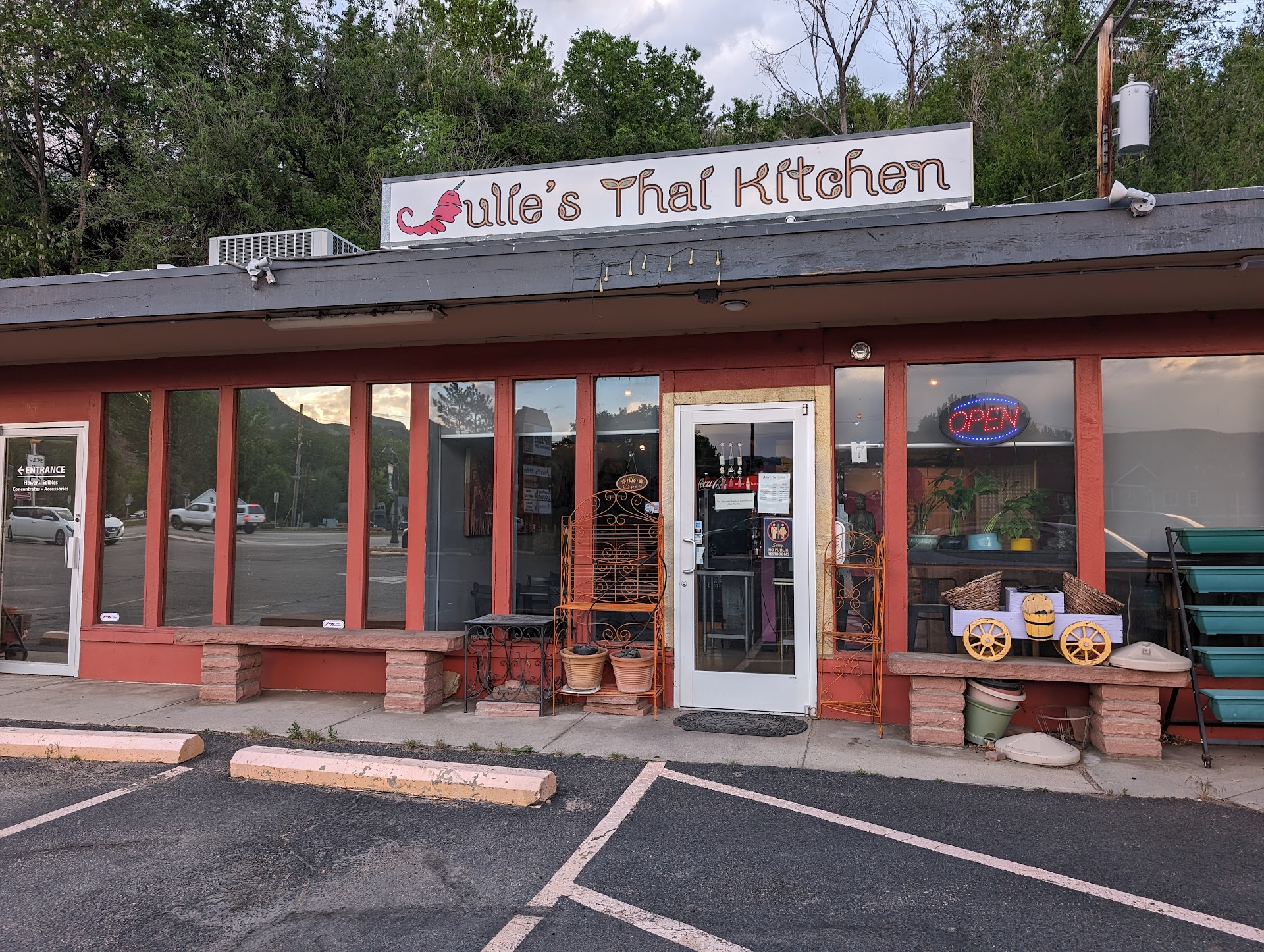 But there were several negatives which make me not want to ever come back here. First, they took an hour to make our meals and we ended up getting them to-go. The waitress did warn us that they were very busy, but I only saw 4 tables there and 3 people cooking in the back. I didn't think they'd take an hour to make the food. Very, very slow. Secondly, with how long they took I expected really good authentic thai food. I love thai food. I've been to Thailand and love going to thai restaurants whenever I travel domestically. This did not taste that great. The ingredients tasted fine and fresh, but everything tasted boring and bland. I got the Tom yum soup which just tasted sour and felt like it was missing something. The red curry tasted very watered down. I asked for medium spice, and it was not spicy at all. It barely even tasted like curry. After finishing my meal I felt unsatisfied.