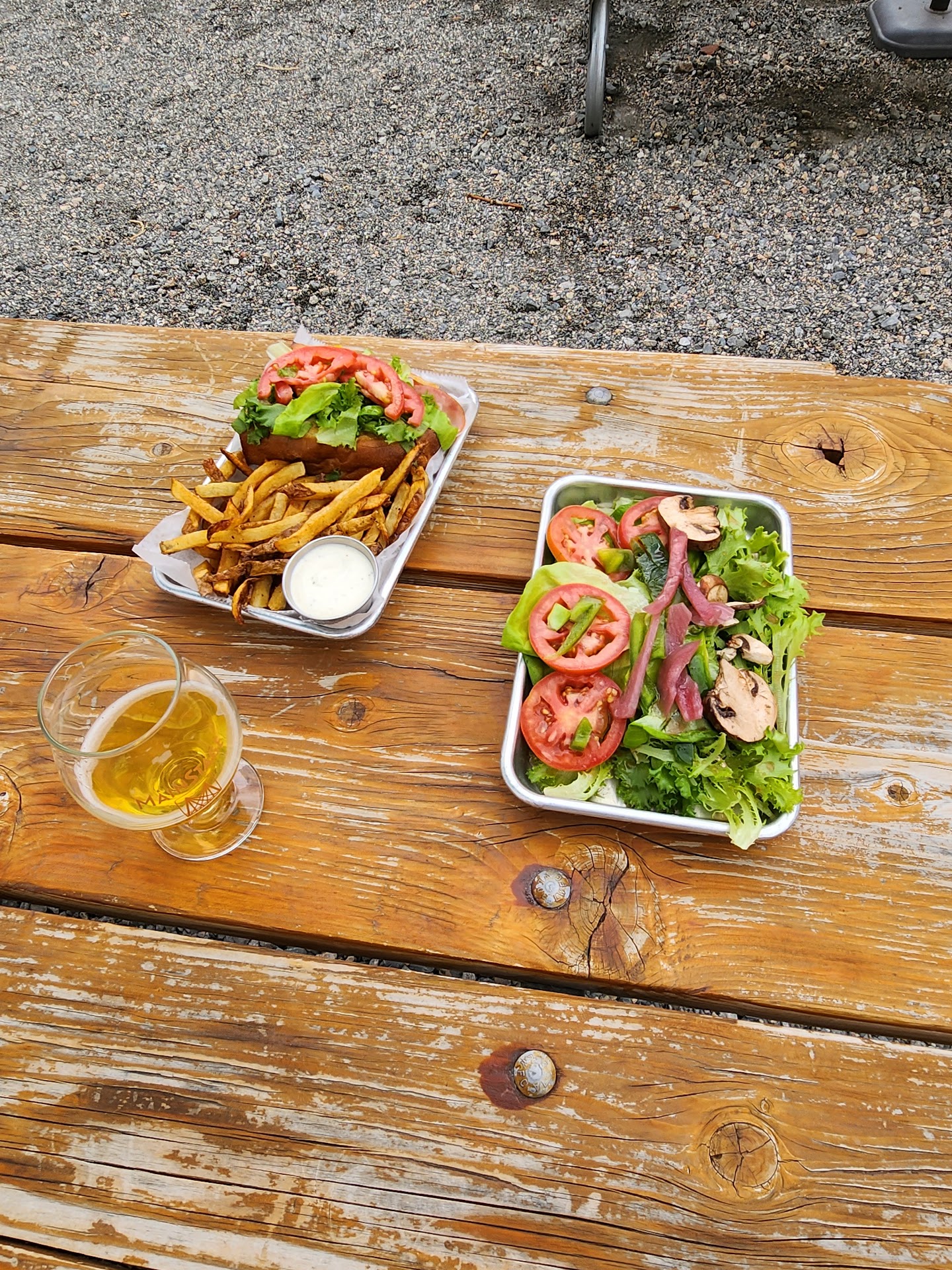 Read moreWould love to rate the food on its own as being great, we were excited to finally get to eat here but they forced our stay to be a short one. We spent well over $100 on a meal for 2 and we kept trying to enjoy it despite a little sprinkle of rain. Then had multiple servers come by and try and close the umbrellas above our outdoor picnic table. I politely declined saying I didn’t want the debris and rain getting into our food, he said he’d come back later which I thought was best, only to have another server not 5 minutes later come out and literally tell us to try and hurry and eat in the next 5 minutes, because they need to close the umbrella so it doesn’t blow away! It was not windy in the slightest, and there was barely a sprinkle of rain. I was flabbergasted, we quickly just asked for boxes so we could just leave, not only did they rush us along but then not to consider the debris from on top of the umbrella going into our food that we just spent a good amount of money on just blew my mind. Only to see their neighboring restaurants with their umbrellas open unfazed. Certainly a strange hill for them to die on and to chase off their well paying guests. Very unwelcoming. Will unfortunately not be dining here again, ESPECIALLY if there’s a breeze or...