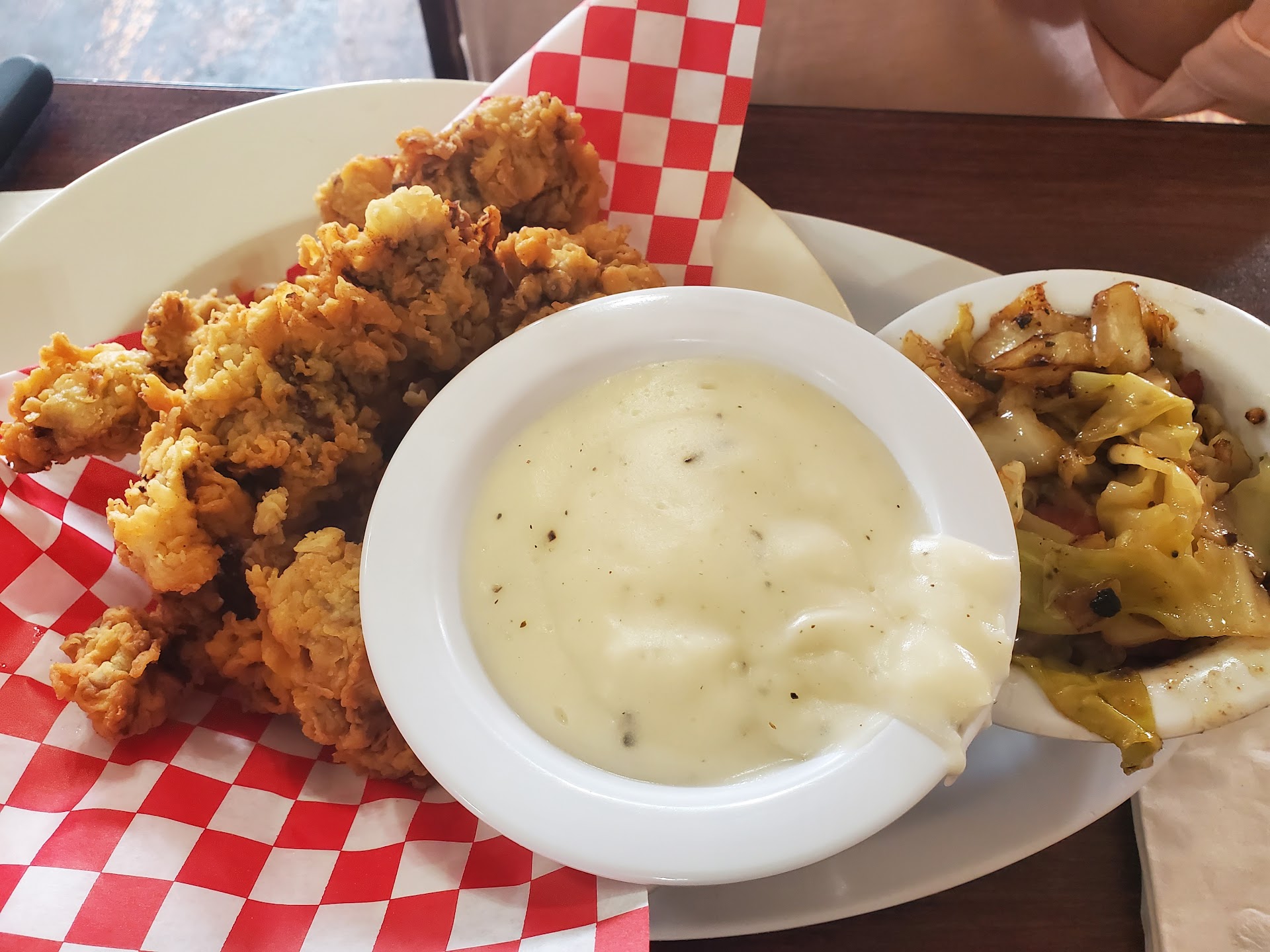 I think I was a little surprised the batter came off as soon as I started cutting into the chicken fried chicken (usually not a fan of gravy, but Railhead Cafe’s gravy was quite good!), but my son still really enjoyed it. And as for the steak, we’ll pass next time to try something else.