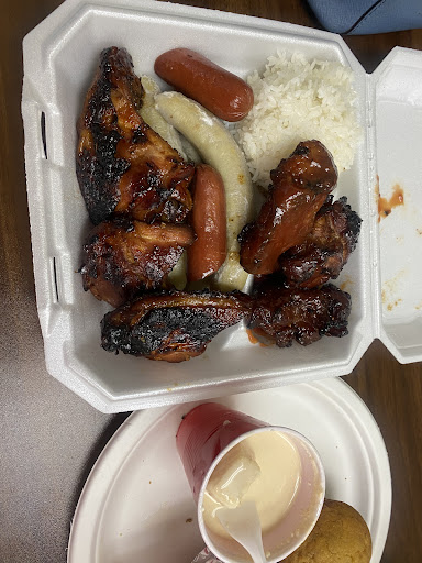 The bbq is friggin awesome! Although I don't eat oka(raw fish with coconut milk) it's pretty good. Price can range from $5-$20 depending on how much food you take. They have chicken, turkey tail, sosisi (hotdog), oka, banana, and rice. I don't know about taro. PJK is visible from traffic and you can't miss it they have a sign in the front advertising their bbq....