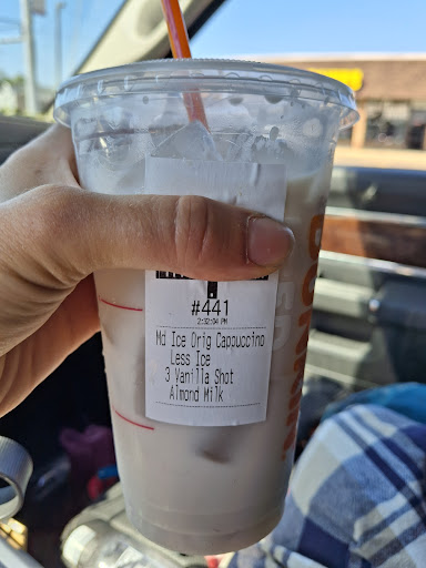 Read moreThis is the THIRD time I've gotten "coffee" from this dunkin...with NO COFFEE. Occasional espresso beverages are the one luxury I allow myself...and I'm tired of wasting my money on B.S. Usually, when I'm handed a latte or cappuccino where they forgot to put the actual espresso in, I politely ask if there's coffee in the drink (it's always very clear when there isn't) and the cashier will take it back, inspect it, apologize, and pass it to the folks making the beverages to add the main ingredient. Annoying, but not a huge deal when it's corrected. HOWEVER. Today- after waiting for over 15 min with 3 cars in front of me who each only had 1 item- I got handed an iced "cappuccino"...which was pure white (check photos). I paused a moment, smiled at the woman at the window who did not look pleasant, and said "I'm sorry, but is there coffee in that?" She stares at me like I'm an idiot and says "well it's an iced cappuccino with almond milk so that's what it looks like" ....what?? I didn't want to make the people behind me wait longer too, so I simply took the beverage, and drove away. I took a sip...and SHOCKER I had a cup of cold, vanilla flavored almond milk!! No espresso at all. Very disappointed with the lack of care consistently taken at this location, disappointed with wasting money, and even more disappointed with the attitude I received for zero reason this afternoon.