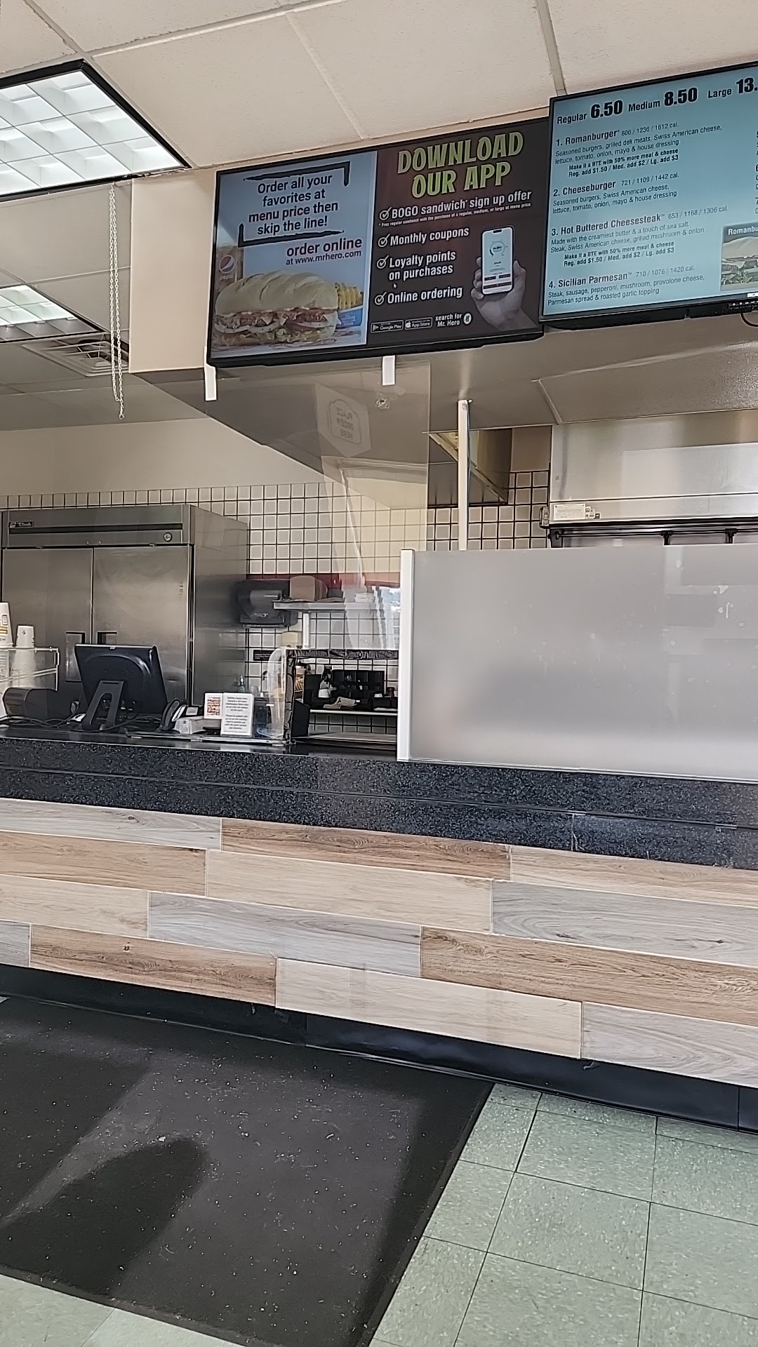 They must be severely understaffed. I was the only customer and after my order was taken, another customer came in. Since the man taking my order was the only one working, he couldn't start my order until after taking the new order. The time was agonizingly long to have my meal prepared and the woman that called my order out said it wrong so I stepped back from walking to the counter, by then a third customer came in. She then said the number from my receipt and it was indeed my order. I had ordered it to dine in but was still presented my food in a bag? The food was amazing, as it always is at Mr. Hero. The problem I had was that the sandwich wasn't cut all the way through, just the top. That's frustrating when you know you're already going to eat a romanburger that is going to be messy as it is. Topping it off, I was provided 2 napkins and I have seen this as a trend at all Mr. Hero's. So anyway, the food was delicious and I may stop in again but will already be prepared to wait a little longer and I've already adjusted to never getting...