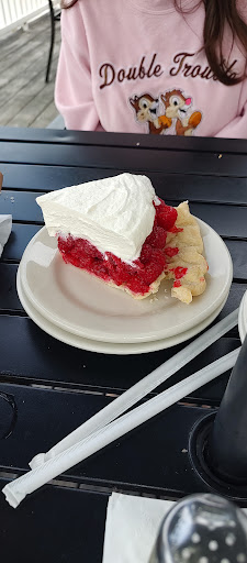 Read moreGreat food, beautiful setting, amazing pie (if a touch pricey). Stopped by on our way through Maine. It's been a family tradition for years to stop by here for fresh fruit pie. In fact, while the food was great, stopping by for just a slice of fresh fruit pie would be an excellent idea. Anyway, I got a chicken sandwich with spicy sauce and blue cheese. It was very good and enormous. My one daughter got a chicken ranch wrap. It was delicious - great mix of foods. My other daughter got their fish and chips. The fish was fresh and very good - not super crispy, but great taste. Fries were ok. My wife got a French dip sandwich which was very very good. Hot and melted cheese. The star of the meal was the pie. We split two slices (strawberry and raspberry), so simple and so good. Fresh, perfectly ripe fruit, a bit of some kind of glaze to hold it together and a very generous topping of fresh whipped cream. Wonderful! Blueberry pie (even better I recall from previous visits) is only available in August when fresh wild blueberries are available. Slices of pie were very large (enough for two) but cost almost $9 each. Service was very friendly and attentive. We ate on the deck and the scenery was very pleasant. They are dog friendly. Well behaved dogs are welcome inside or on the deck. Our was obliging. Otherwise I'm not sure what we would have done. Thanks for being dog friendly. Overall, great place, huge servings, very good food, great pie. Price maybe a touch high, but not too bad. Overall, worth a return visit when we pass through again. To save money we might just get four slices of...