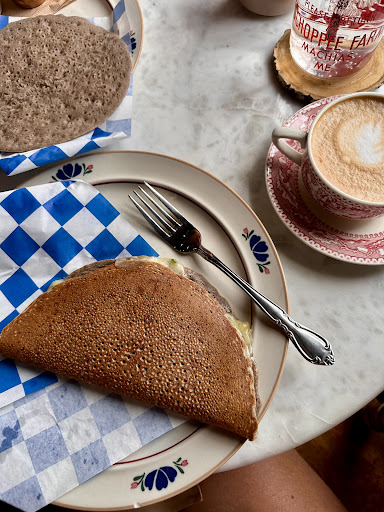 Beautiful quaint cafe with excellent views of the farm. I got an iced maple latte and a buckwheat pancake filled with cheese, herbs, scallions, and topped with butter. The buckwheat pancake was phenomenal and I will have to try to recreate it at home, as I live too far away. The maple latte was also very good. This is a must stop in the...