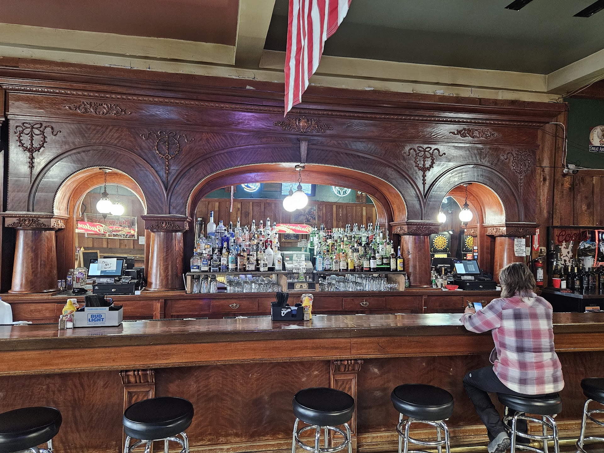 Walked in with my dog, a man behind the bar yelled âHey, there are no animals allowed in hereâ. He did say, I could leave the dog out front. At that point, there was no way I was going to spend money there. Itâs really too bad, he didnât handle this correctly.