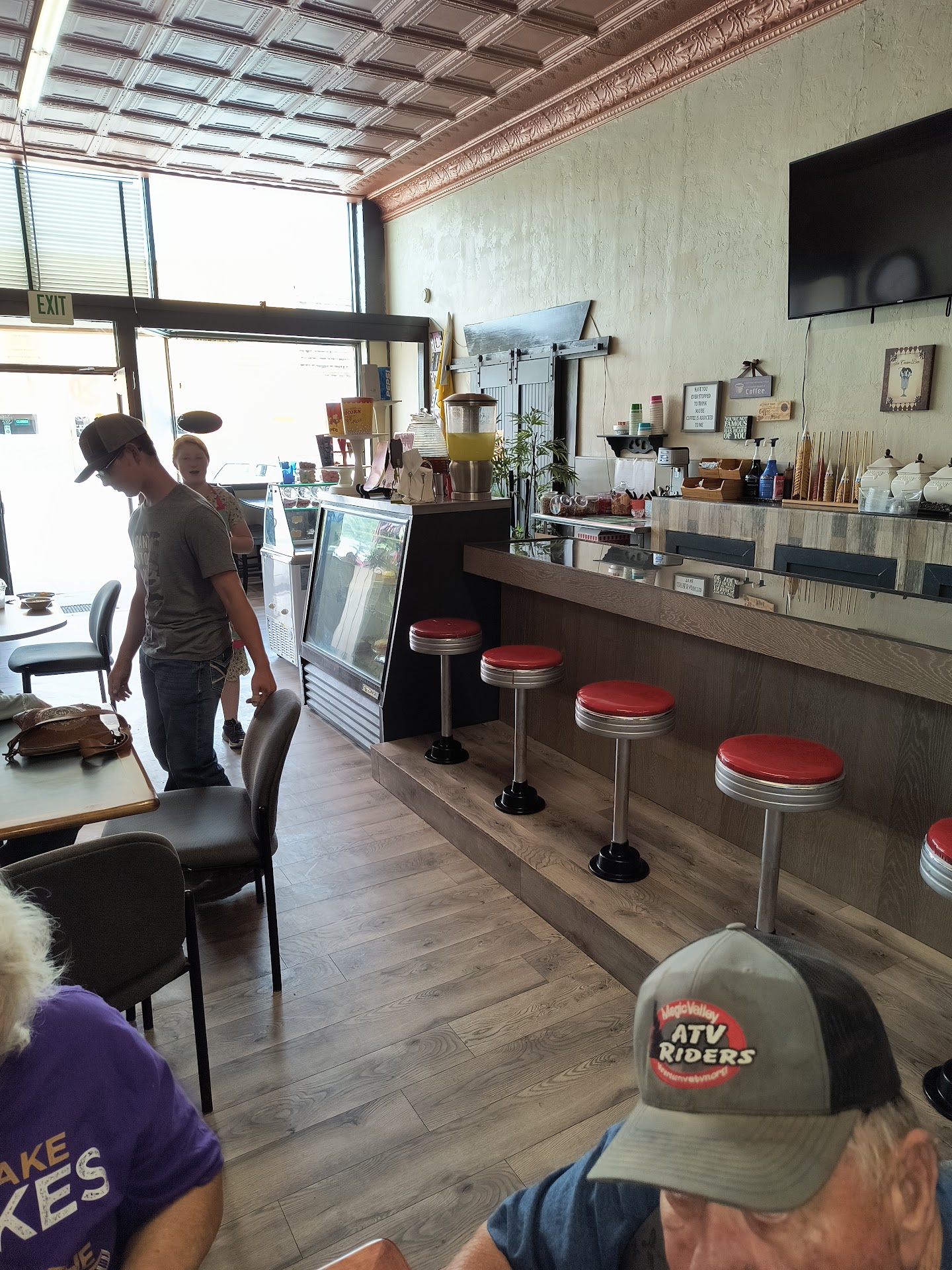 Set up in an historic cinema building (some of which is functionally preserved and operational), a charming bar style dining area takes the center line dividing a welcoming, wholesome staff (a family of proprietor parents and their children) creating and serving amazing meals from a section of table seating where guests can enjoy the homey cafe vibe and decor and the still used paneling and other old details of the building's past. The kids are attentive and quick to bring anything requested. The place is a fusion of a Mexican eatery and an ice cream/soda shop, with an extensive menu of Mexican fare, an even more extensive list of drinks (non-alcoholic, like Italian sodas and the like; this is very much a family restaurant in both operation and patronage), and an array of ice cream flavors that remind one of Baskin Robbins. Milk shakes and mini donuts are also available. There are so many options, and all those my family tried were great! The guac is made fresh in house and is FABULOUS, and the salsa has just the right amount of kick to be enjoyable without offending more delicate palates. Lime cilantro rice paired with tacos made an excellent lunch and everyone got something different to drink. I cannot recommend the Caribbean Breeze enough, but every one of them was delicious (I had to...