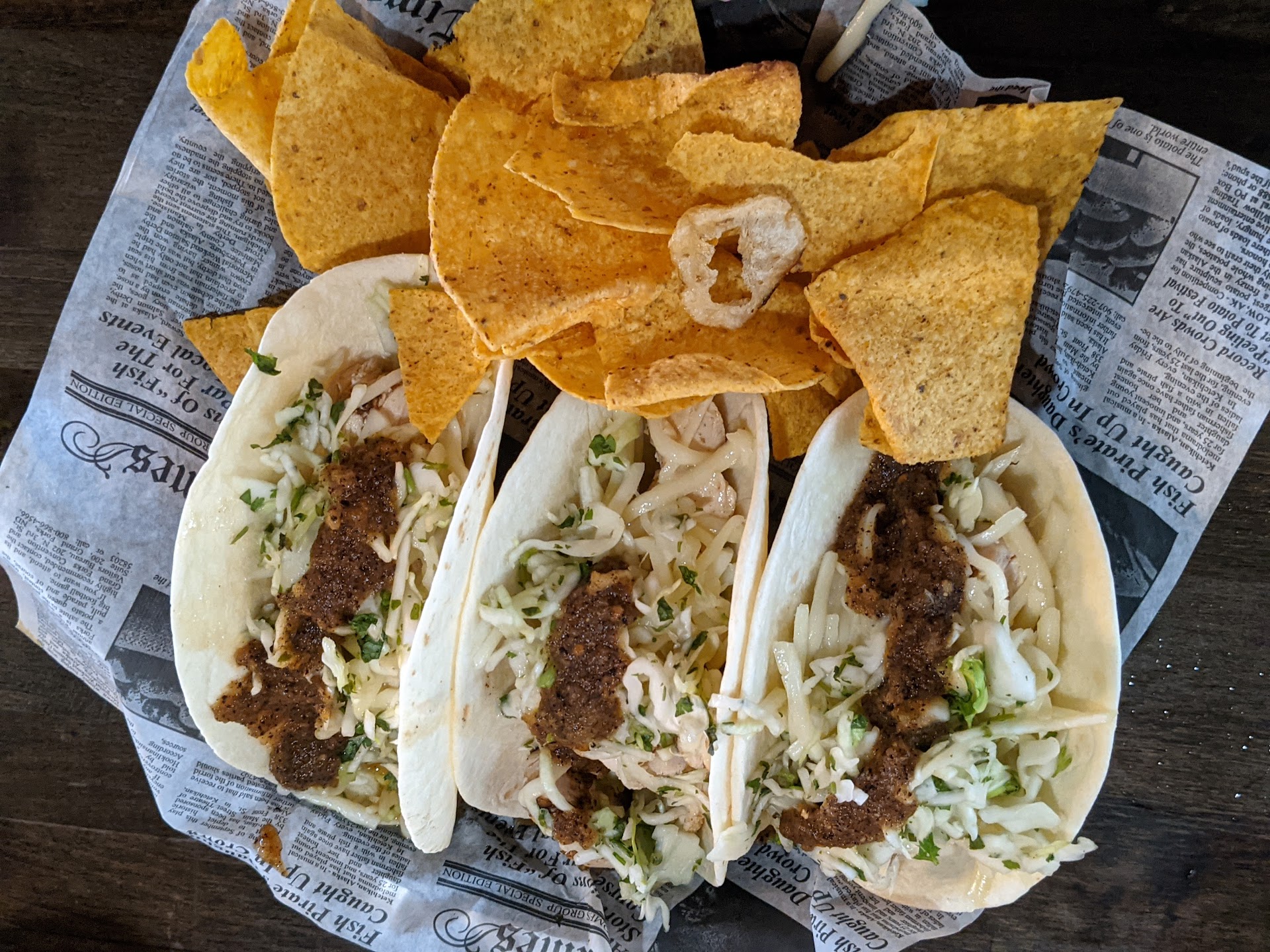 I got the tacos with grilled chicken and WOW was I impressed. They were delicious! The chips weren't anything to write home about, but who goes to a restaurant for chips? I usually skip the chips anyways. The tacos came with tortilla chips.