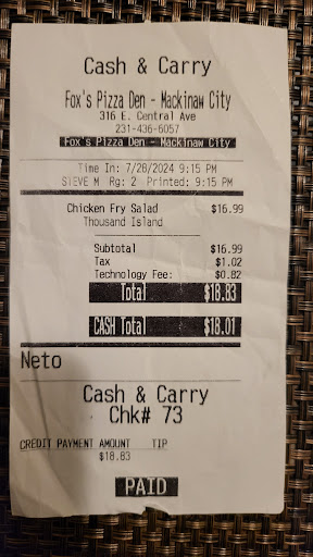 Read moreCame from Chicago to visit Mackinaw City and Mackinac Island. On Friday, me and my family were hungry, so we decided to try Fox’s Pizzeria. I saw it online and it looked good. I love pizza, and the name “Fox’s” reminded me of Foxy from Five Nights at Freddy’s, so I was already interested.