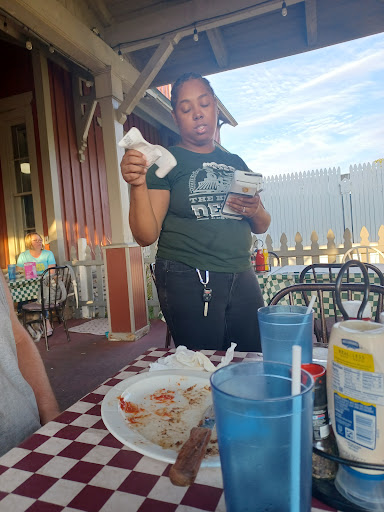 Our lunch was delicious everyone that ordered what they got was loving it the wraps were divine the burgers were delicious and the taco was great but when it says it comes with corn it should have came with corn and it should have came with the barbecue sauce when it says it comes with barbecue sauce. It was a corn tortilla for goodness sakes it should have came with a corn tortilla instead of a flower tortilla. Also our waitress was just a tad bit naughty I asked her about how big their Philly steak and cheese was and she goes why should you ask about a Philly steak and cheese it doesn't matter what you what are you get a Philly steak and cheese they're all the same and those were her exact words to me. He never did answer my question I wanted to know was it a normal size was it small a 6 in a 12 inch how big was the darn sandwich. Then my cousin asked if she could get a bird early bird sandwich as a wrap because it never said if it was a wrap or a sandwich and she goes It's always a wrap with a very snotty attitude. But since we were all there and we were hungry anyways we still stayed and had food so I thought well fine I will just order the burger at the top of the menu and which ended up to be the depot Burger which I could have anything I wanted on it. And my husband had a burger also which came with bacon and onion rings and all kinds of goodies which looked very nice. So if all else failed if we could have at least had the meal without the attitude I would say this would have had a two thumbs up but I will not be giving a two thumbs up at this restaurant I will give it a one thumbs up and a one thumbs down. And she did not get a 15% tip from me. Maybe she will think next time on having a nice sweet attitude when she talks...