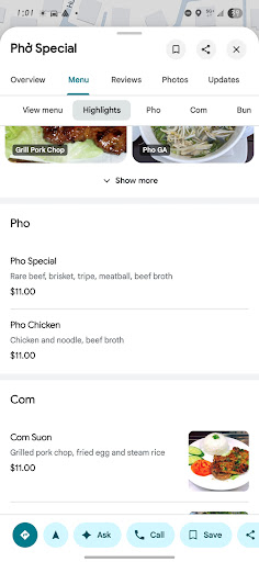 Read moreWay higher prices then other places with larger portions. But I order beef pho and extra meat balls. Before I order I asked will it be in a separate container I was told yes, I ask would meat be in broth she answered yes on the side. I staed to her ik make sure irs in the side. Ok I was given 3 meat balls slice very thin not in a separate container which is what you normally get just not sliced extra thin. When I asked the cashier where was the extra meat container she told me all meat was in main container. I reminded her she said it would be the side then proceeded to check the order open trey and ask this extra meat. She didn't respon . I paid 4 dollars and wasn't given anything. Will 4 dollars break me nope not at alk but if pay for something you should get it and the manner you were told you would receive it. I didnt argue just left. Try llittle Saigon, or Pho Que Huong Restaurant better priced, taste and size and customized options. And for their prices pay at special oho you get oxtails pho from Que Huong Restaurant all in same are worth the travel I'm closer to pho special but...