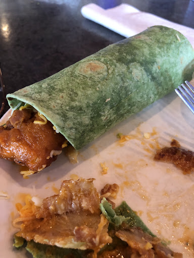 I ordered the Chicken Lip Wrap. As soon as my laconic server delivered my entrée, I realized I chose unwisely. It did not even pass the eye test as my meal was enveloped by a waxy, largely flavorless tortilla with a greenish hue that only the wicked witch of the west could love. Things did not get much better on the interior of my wrap, filled with pre-grated orange cheese, chopped iceberg lettuce and two "chicken lips".