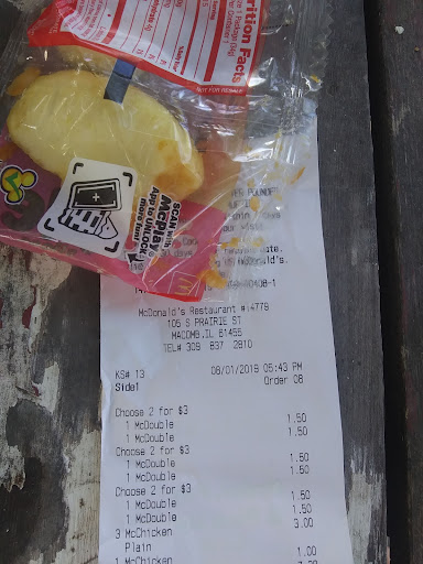 Read moreOn my order was a quarter pounder, and 2 6 piece happy meal with fries and a Mc Flurry. The person taking our order said they didn’t have things even thought they did. Then another person took over and finished our order. We got our happy meals and pulled forward to wait. We waited for over 10 minutes for one quarter pounder.we got our food then drove home. The food was surprisingly warm and they got everything right. I then ate 2 of the chicken nuggets. On my 3rd nugget I took a bite and felt something hard. I thought it was just one piece so I kept chewing. It was still hard and I couldn’t bite it. I then spit it. I looked at it and it was a bone. There was a chicken bone in my nugget. It was over a 1inch long. It was a terrible experience and I will never go...