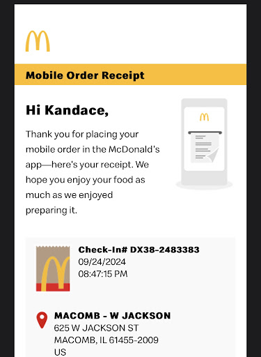 Read morehonestly, such a sad excuse for McDonaldâs. I believe that the service just keeps getting worst and worst, especially close to closing! For example, I was trying to get food before I had to go into work and I waited in drive thru for 20 minutes, the line was backed up to the road and was moving very slowly - I got in line at 11:40pm & did not reach the intercom until 12:03am, the manager than told me once I reached the intercom âsorry we closed at midnight.â , so I told her how long Iâve been waiting in line and her excuse was that she was short staffed, I realize how hard it is being understaffed but I was in drive through for over 20 minutes than refused service, clearly I was willing to wait & Iâm assuming the two other cars behind me were as well thatâs been waiting too? They even shut off the parking lot lights while there were still cars in the drive through, but me and the other cars still waited, I ended up being late for work with no food. Wasted my time. Iâm pretty sure that if those customers have been in line before the closing time; you legally must serve them but anyone else who comes after closing time cannot be served. Hope you give your employees this knowledge and fix this issue so it doesnât happen to...