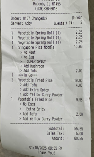 Ā Ā Ā Read moreWhat a positive experience! I was very hesitant eating at an unfamiliar location as my stomach is incredibly sensitive, so I tried to order simple. The white rice was basic - not your preferred jasmine rice - thankfully it wasnāt overcooked. After seeing my co-workers fried rice I wish I had gotten that, it looked really light and fluffy. The Mongolian beef was perfect in spice and amount. They donāt overserve you in massive styrofoam containers, theirs are about half the size, making it rather easy to finish you meal when you sit down to eat. The lunch special offered crab Rangoon vs an egg roll, I chose the Rangoon and was overjoyed at my decision! Lol I couldāve eaten a 12 pack of rangoons but praise the lord I have self restraint. The lunch special also offered a soup, which I chose egg drop. That too was perfect. Would definitely recommend this place for those with sensitive bellies, as the āfriedā items are fried so lightly, they did not bother me at all and usually they would. Thank you so much for the quality of your foods. If ever back in the area, would choose here to eat again over other options. Would love to try the sushi now that I know how clean...