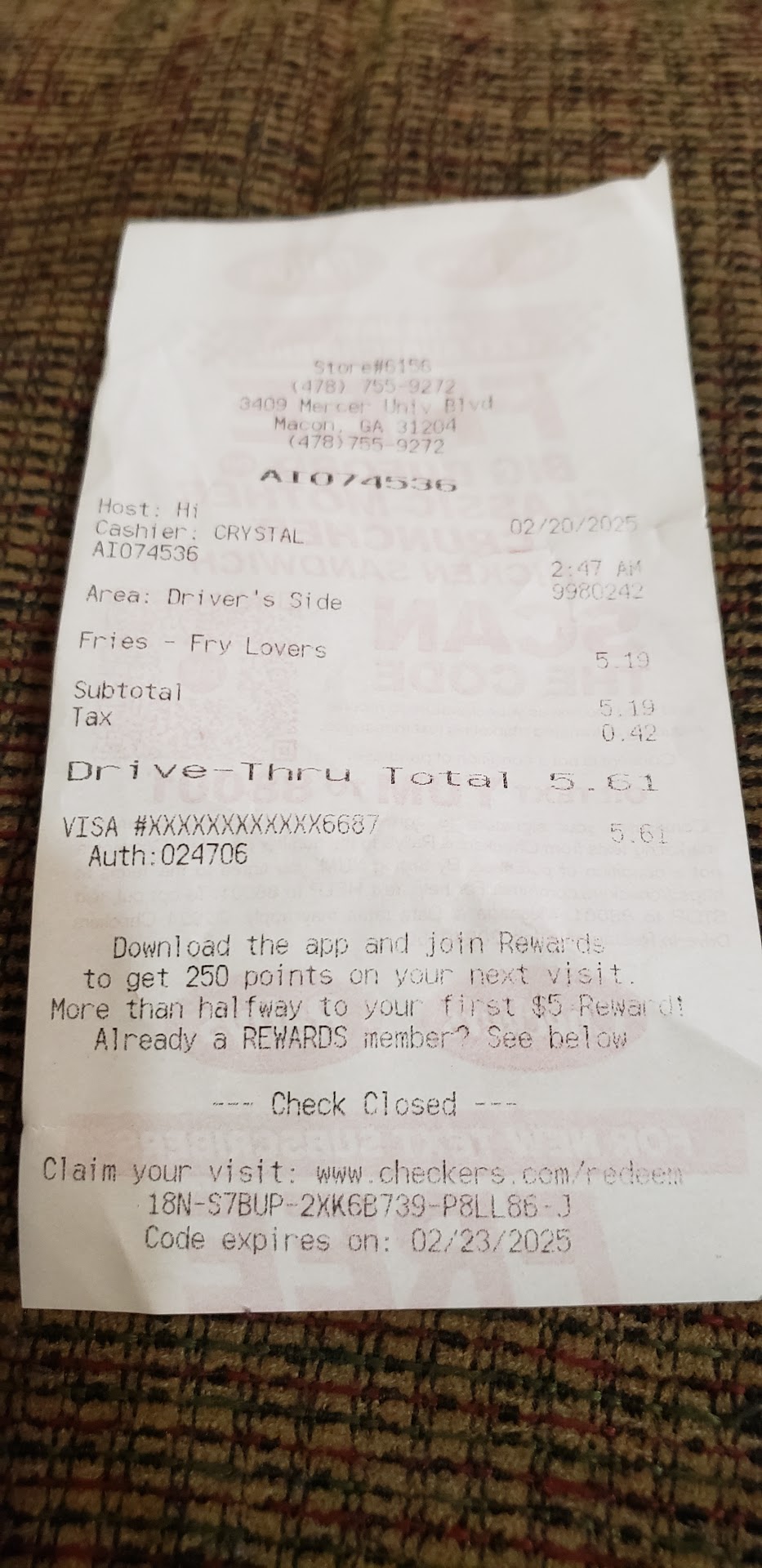 Read moreThis is the slowest checkers I have ever encountered! I have waited in the drive thru over 15 minutes many times. Then they just hand you the food without even saying thank you for waiting. More than once while I was waiting at the window I could see employees just standing around looking at each other while I waited over 15 minutes at the window for just 2 burgers! Cars on other side came and went yet I just sat there. Cars behind me were blowing their horns. Once you order you are stuck in line because you are totally blocked in. I've had to cut my vehicle off while stuck because it started to overheat. From now on I will drive an extra 3 miles to the checkers on pio nono where they are fast and very courteous. I once waited 5 minutes and they were so apologetic. Checkers on Mercer University is NOT what I would...