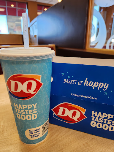 Service was reasonably quick during a busy evening around 8 p.m. However, the cashier had not been trained on how to use coupons that are offered in the DQ app. So it took a few minutes for him to get some help from another worker, in order for me to be able to use my BOGO birthday coupon that came on the DQ app. Ordered 2 large Blizzards, different flavors. Both when freshly made were very (50%) runny, like they had been sitting at room temperature for 15 minutes (which they had not). I wanted to ask them to remake both of these and do it correctly, but it would have just been more trouble and aggravation than what it was worth. Maybe they Blizzards are better and firm like they are supposed to be, during a less busy time of the day. Have previously purchased Peant Buster parfaits and Banana Splits at this restaurant, and they were always well made and...