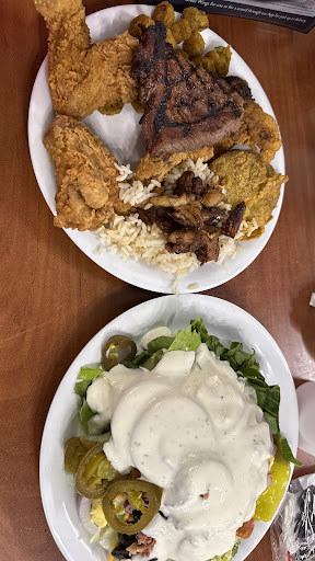 Read moreA little pricey. The waitress could have been more attentive. You would see her at first but then it would be quite sometime before you would see her again. In the meantime, our glasses would be empty and we would have a long wait for the next refill. To her defense, the place was a little crowded. The food was inconsistent, some was very good and hot; like the fish, shrimp, chicken wings, the baked potato and biscuits to name a few. The sugar free blueberry pie was delicious. The steak was a little dry but edible. It would have been nice if the condiments weren't almost empty, especially the steake sauce. The salad was very good and had a lot of toppings. Overall, there was a nice selection of food to choose from; although there were times when they ran out of food and it took the cooks a while for them to replace it.