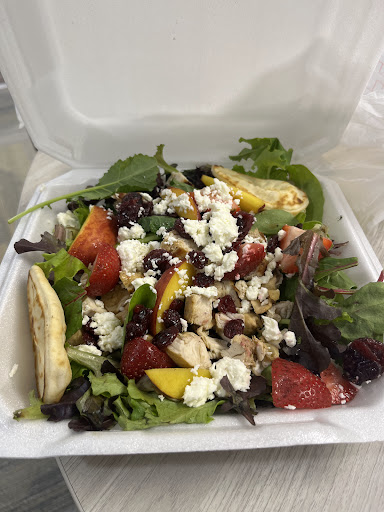 The flavor of the summer chicken was great, the peaches were grilled nicely. The chicken itself was very dry and chewy. The attached salad arrived without any dressing and the chosen side, squash casserole, was very tasty (though it almost felt more like a squash cobbler than a traditional casserole but no complaint there.)