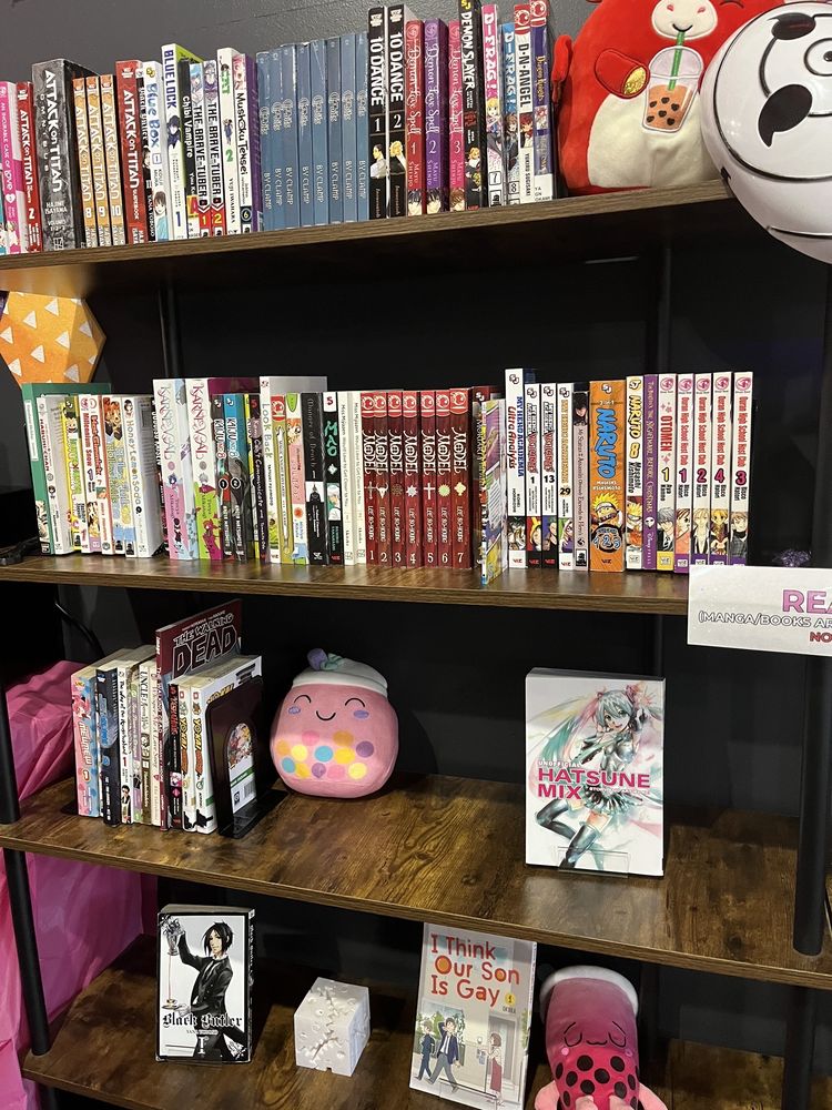 The shop (including the bathroom) was clean, and the atmosphere absolutely shone! Several bookshelves full of manga to browse, lots of beautiful and unique art prints, adorable chibi characters on all kinds of merch, a wall of anime characters...if you're a nerd for any of this kind of thing (like me!) this place will absolutely delight you!
