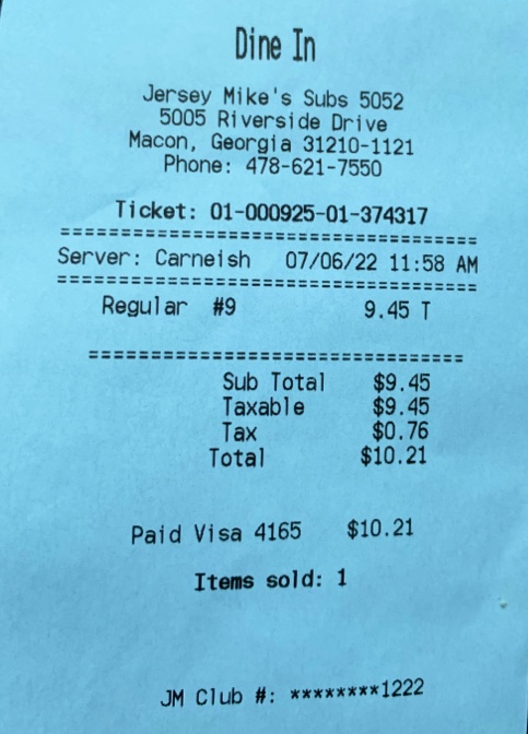 Read moreI frequent this location at least once a week with no issues until recently. My mom and I dined in and ordered the #13 giant Italian. Upon eating, we noticed that there was an unusual thin layer of sliced meat on the sandwich which was less than we normally get. After taking it back to the counter and questioning the girl who made the sandwich of the amount of meat given, it was realized that she only gave us 3 of the italian deli meat instead of 5. To make matters worse, she had the nerve to get an attitude after being called out on her error and acted as if she didnt want to make the sandwich over the correct way. So in hindsight, she expected us to pay $14 for bread, a skimpy amount of meat and toppings (pickles, peppers, onions, etc) that they're stingy about giving you unless you ask for a little extra. But oddly enough, they always make sure you get a heap of lettuce. Be forewarned...when they're slicing the meat, make sure you watch them closely to ensure that you get what...