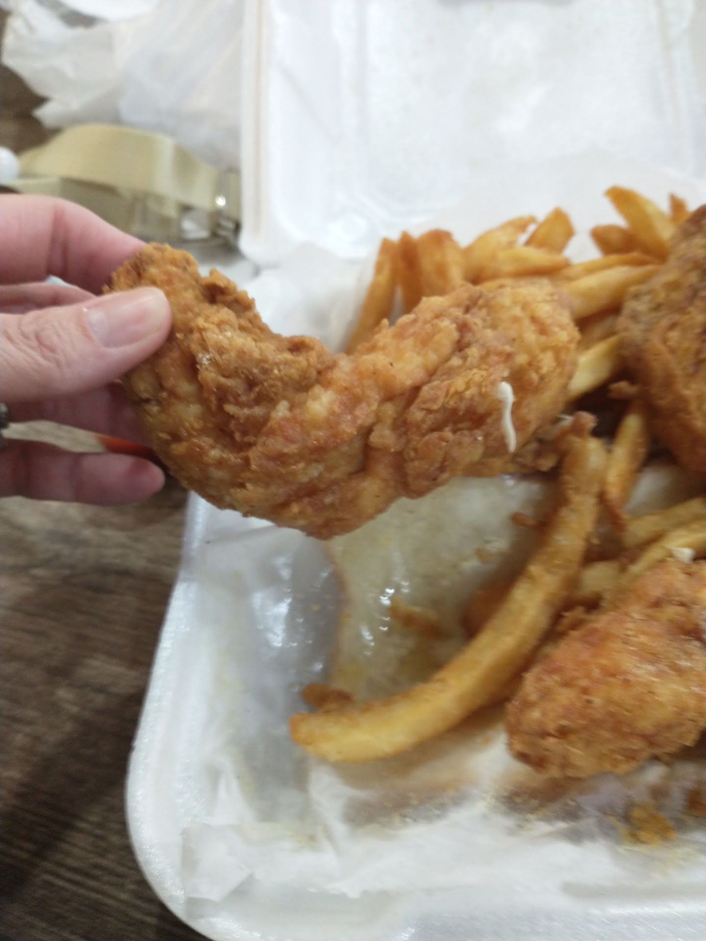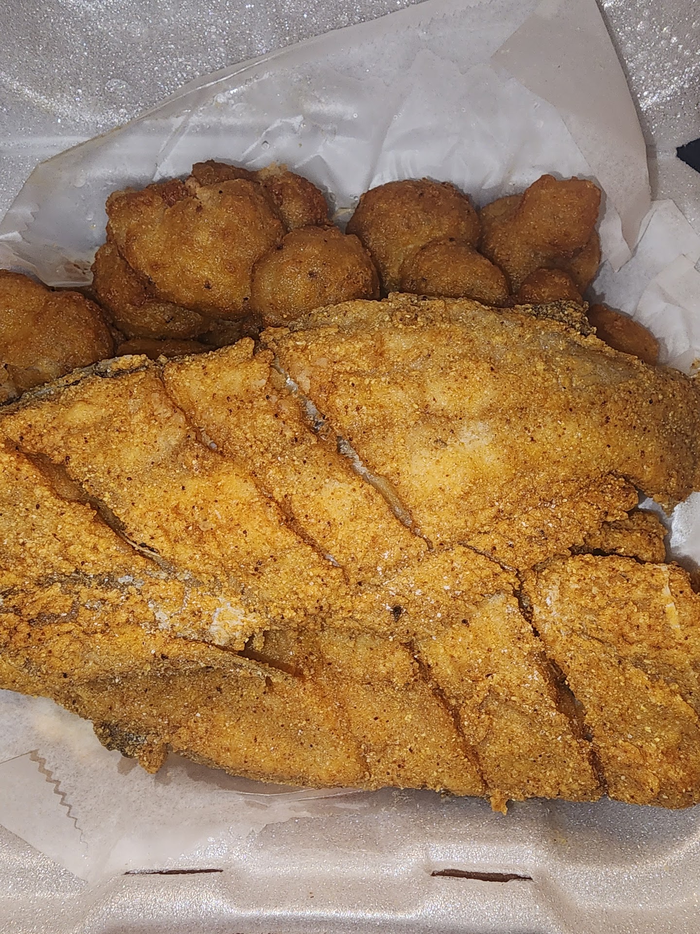 My very first time was tonight I got the 5piece whiting and fry combo it was perfect until I had bones in my fish and I specifically asked the girl at the front did it have bones and she told me no . So for that reason they lost a star. Im pregnant and just drove 9 hours and couldn’t eat the food I paid for cuz I was scared of the bones but my husband tore it up! So great job besides the bones! Will be trying something different next time