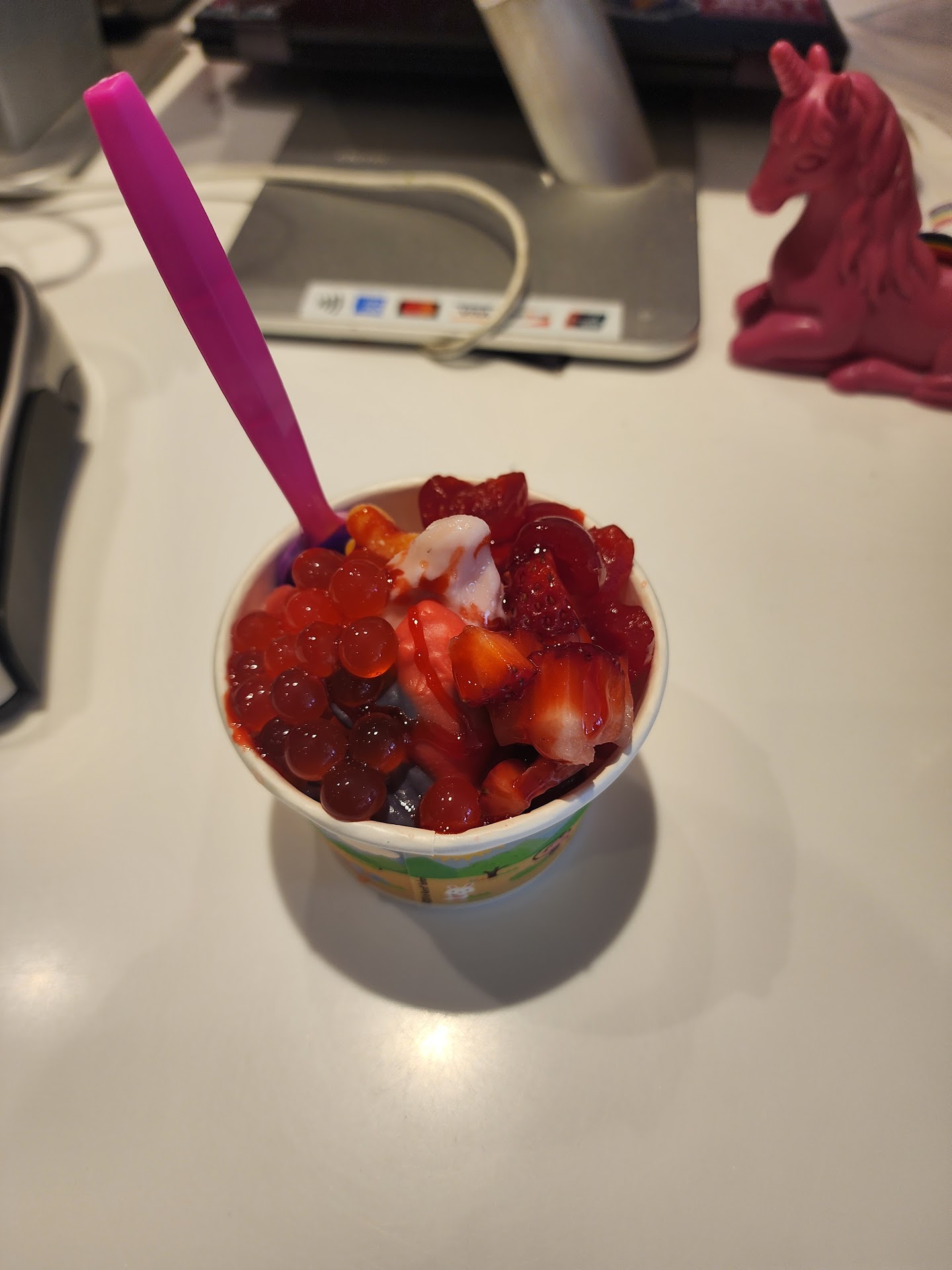 Read moreI love frozen yogurt places like this. My only complaints is that it is no longer self serve (i’m guessing since COVID) I feel like you could get a lot more for your money if I was actually able to fix the toppings I would like instead of having to limit it to a tablespoon of two toppings. Also, I have been to this location a couple of times over the years and have only seen the owner and her child working, while it is sweet— it isn't efficient. Please hire staff or bring back...