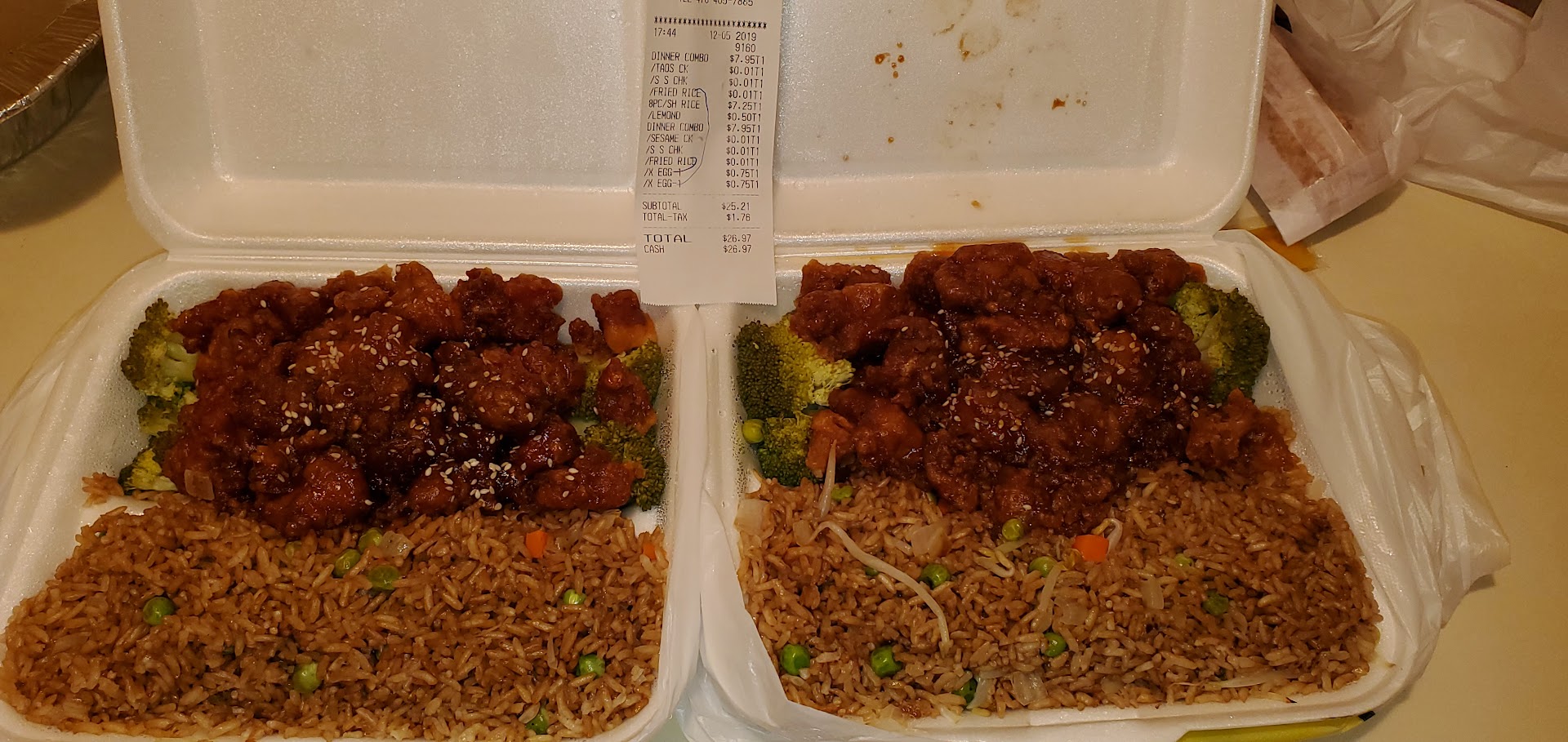 We pulled up and ordered through a very busy drive-thru. There's currently no dine in area which sucks, thus the 3 stars for atmosphere. The person who took our order was very pushy and I didn't quite understand him. However, he was friendly enough afterwords when he delivered the food. We rushed home eat and was NOT disappointed by portion size. We could have easily split the Sesame Chicken dinner with lo mein. The Chicken Fried rice was also very generous and crammed into the boxes which overflowed with sauce and food.
