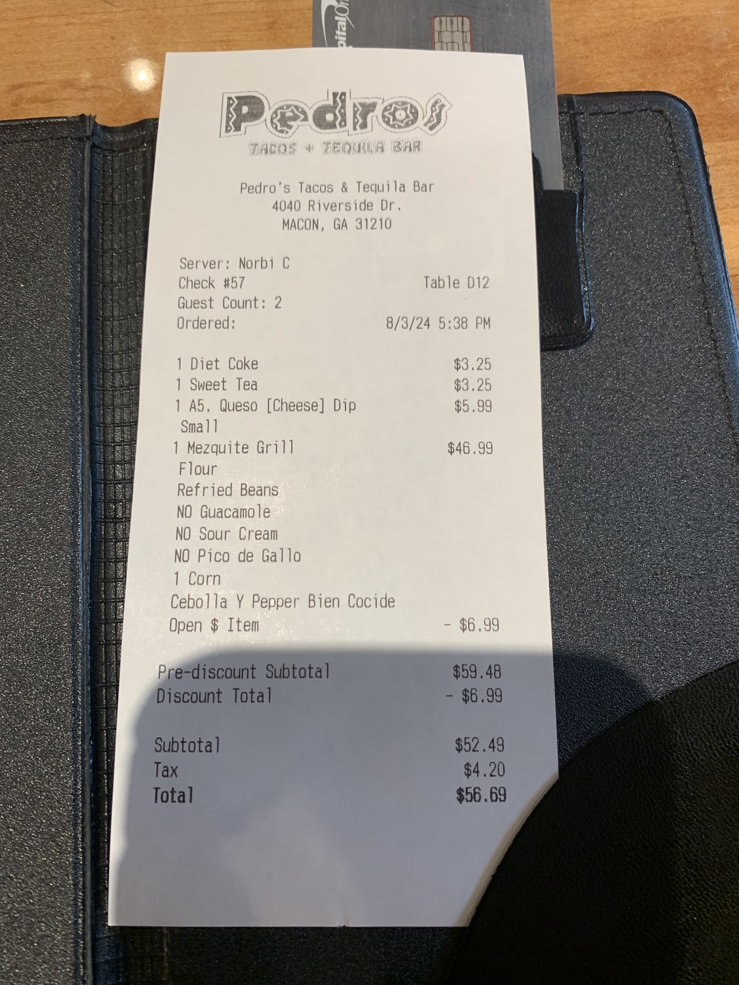 Read moreMy family and I (family of 3) went to Pedro’s on riverside and had one of the worst dining experiences to date. The host tried to seat us at a dirty table twice. Secondly, no one came to serve us for at least 15 minutes after being seated. Keep in mind, the restaurant wasn’t even full. When we finally got a server, she was incompetent. She was not familiar with menu items, she appeared to have forgotten to put our order in (or didn’t know how to put the order in), she brought us Dr. pepper that was so clear you could see through it. We order an appetizer of queso which came out cold. I ordered quesadillas and what I got was some dry chicken in a tortilla that wasn’t even toasted, with a little bit of cheese, was folded over NOT grilled. My daughter ordered beef tacos with just lettuce and what they served us looked like dog food. When she picked up the first taco to bite it, all the contents fell out of the shell and didn’t even leave taco seasoning residue on the tortillas. The hostess that seated us saw our expression and her first question was if we wanted to speak to a manager. When the manager came to our table and we tried to explain to him what was wrong with our order, he immediately grabbed a menu to show us what we ordered. The waitress, knowing that we were not satisfied, told him what happened. He then told us that he was confused because he thought we got what we ordered as if we had forgotten what we ordered. To keep from making a scene we politely asked for check which was $66.11 for 3 street tacos, a quesadilla a la carte, chicken and steak fajitas, and queso appetizer. We also ordered extra tortillas for the fajitas which we never got but it was on our receipt. To add insult to injury, there were several other patron that came in well after we did and were served long before we were. It’s safe to my family and won’t patronize this...