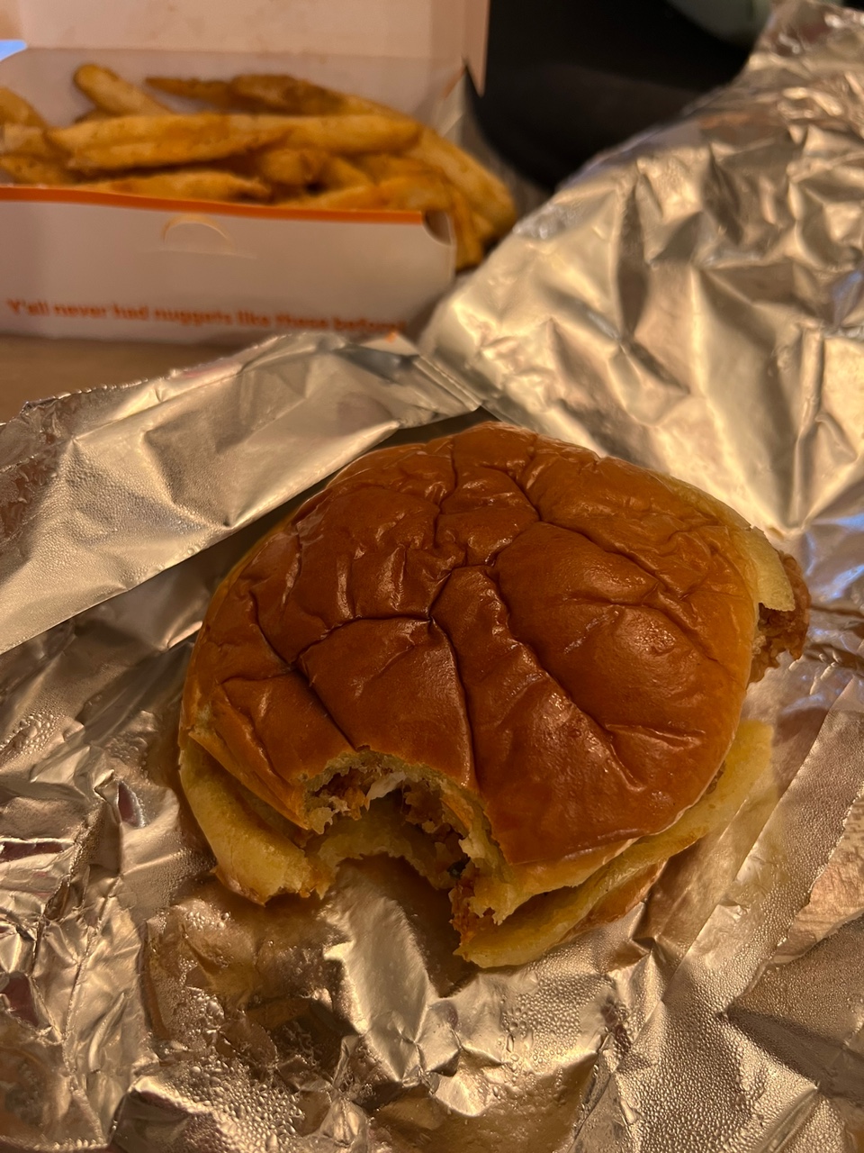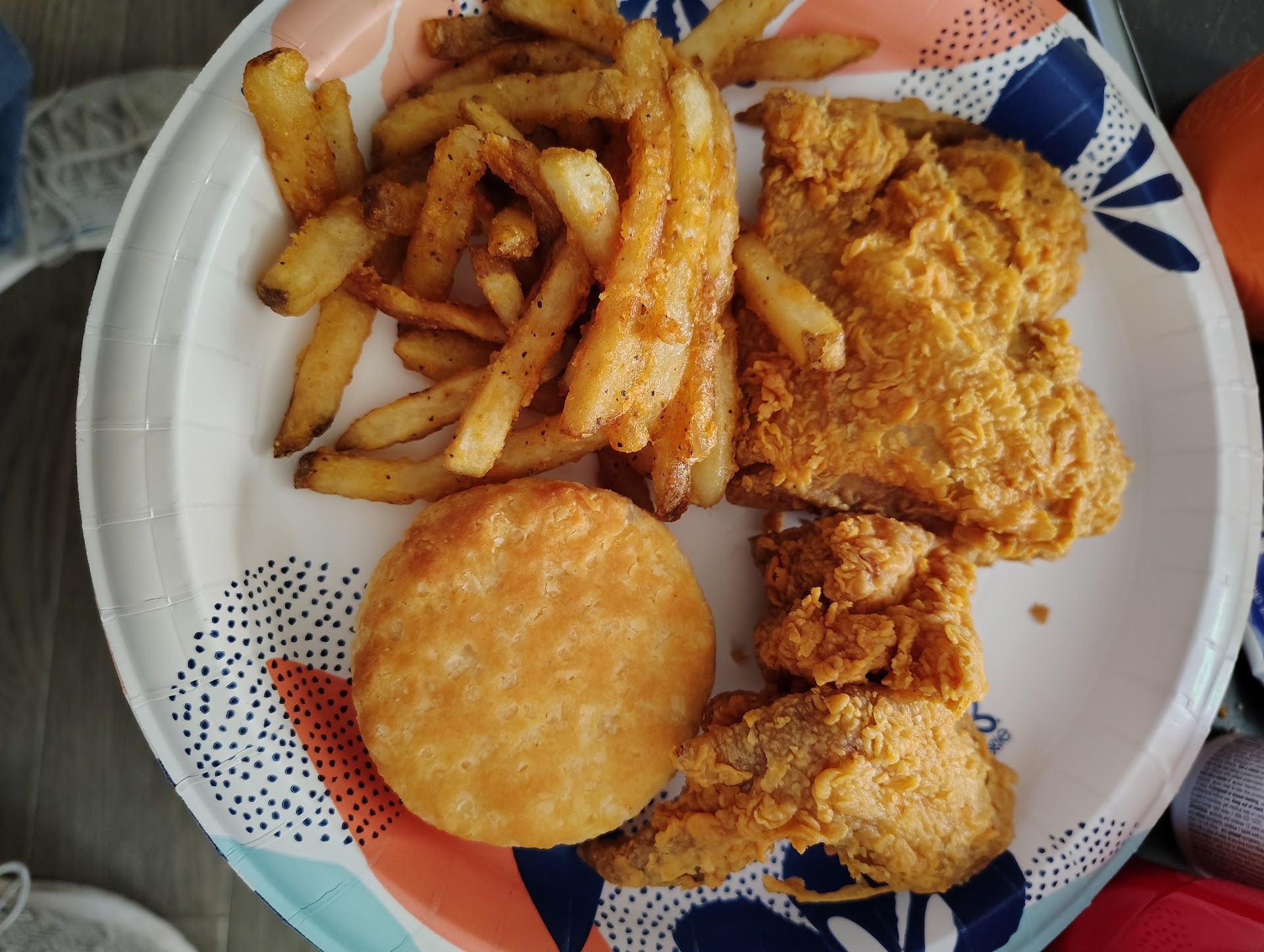 I used the app and ordered a 2pc dark spicy, popcorn shrimp, and red beans and rice. They don't have cajun rice anymore which sucks, but whatever.