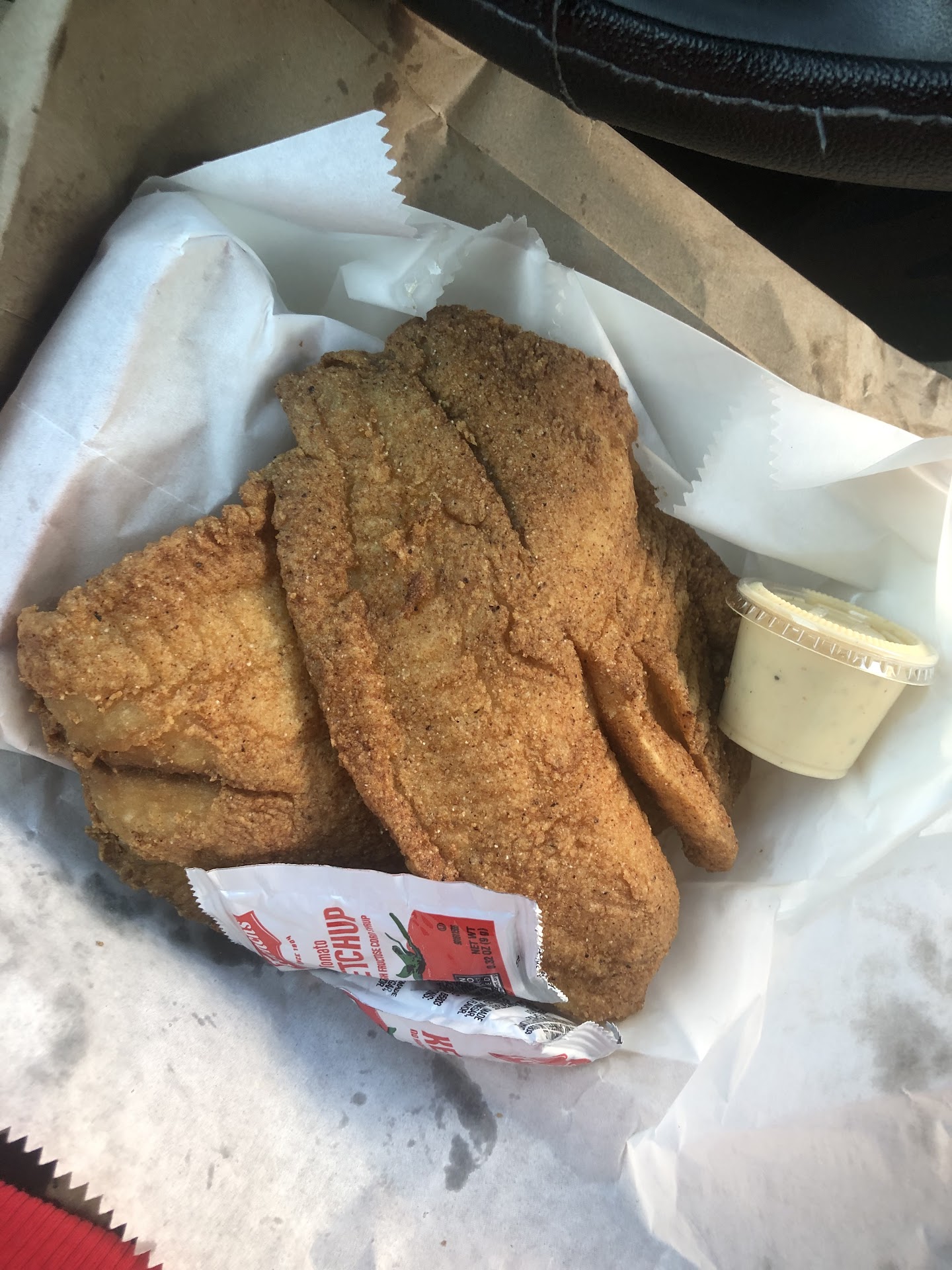 I ordered a 2-pc Whiting Dinner with onion rings, coleslaw, bread & sauce. They brought me two of the largest & healthiest-looking, bright-white Whiting, that I'd ever seen in a long time (Halal food is the BEST--I tell ya)! And with each bite was a delicious coating that I could actually taste the individual spices (I'd almost kill for that coating recipe)!! ๐๐ Again, finger-licking good!! ๐